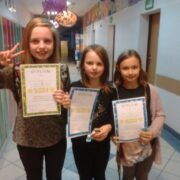 Dziewczyny wzięły udział w szkolnym konkursie piosenki obcojęzycznej . Julia zaśpiewała razem ze swoja przyjaciółką Hanią piosenkę po niemiecku, a Marlena wybrała przebój z lat 80 grupy Eurythmics pt. „Sweet dreaams” . Wywalczyła sobie tą piosenką pierwsze miejsce w szkole i tydzień później wystartowała w konkursie międzyszkolnym. Wielkie gratulacje. Marlenka dostała wyróżnienie oraz w nagrodę słodycze.