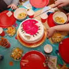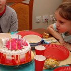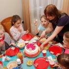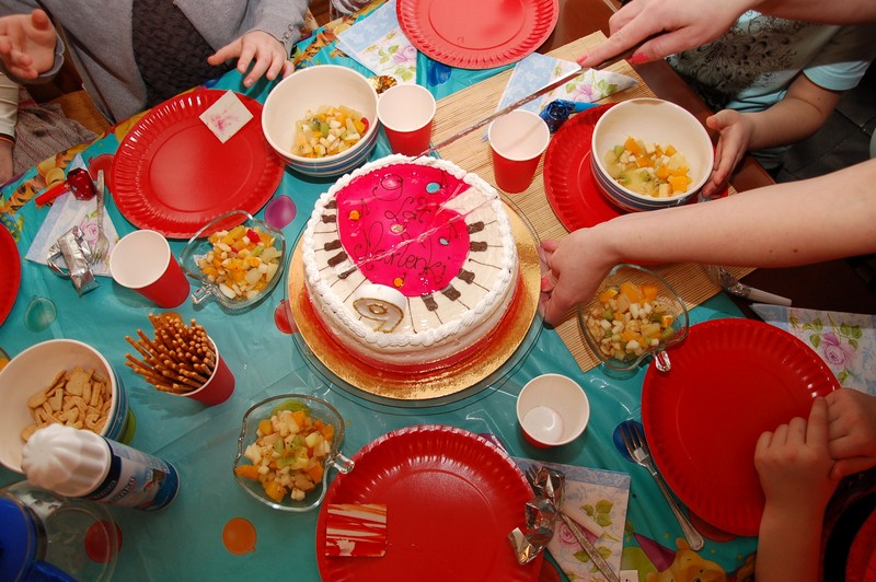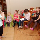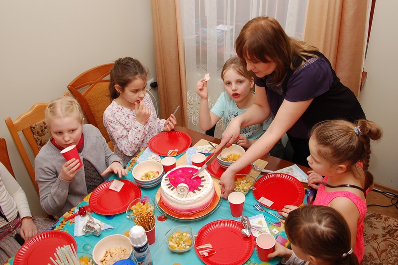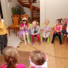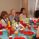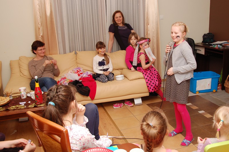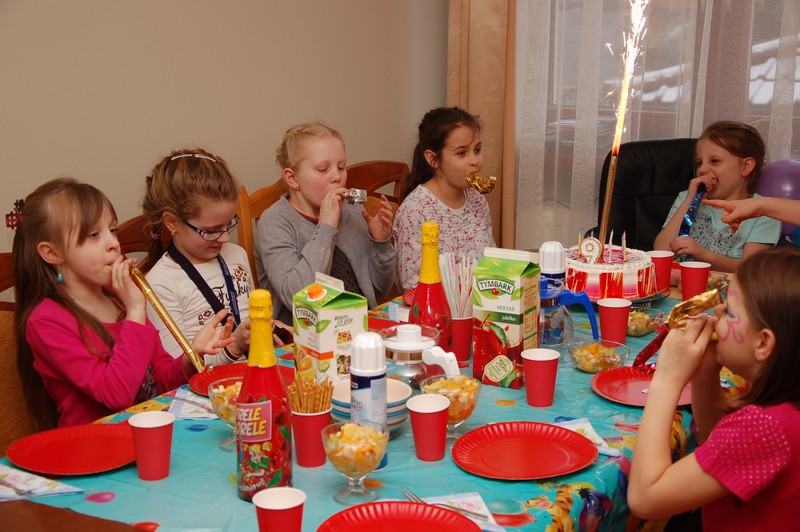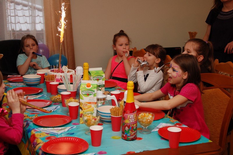 W tym roku urodzinki Marlenki zorganizowaliśmy w domu. To był pomysł trafiony w dziesiątkę. Dwunastka dziewczynek i jeden rodzynek, kuzyn Tomek, bawiło się świetnie! Rozpoczęliśmy imprezę od tortu i dmuchania świeczek przy wtórze głośnych tutek.  Patrzyliśmy oczarowani jak niewiele (tutka – kawałek gwizdka) jest w stanie wywołać wybuchy niegasnącej radości i śmiechu u dzieci. Takie spontaniczne i radosne momenty są niezapomnianą pamiątką dla dzieci i myślę też, że najsympatyczniejszym podarunkiem dla solenizantki.