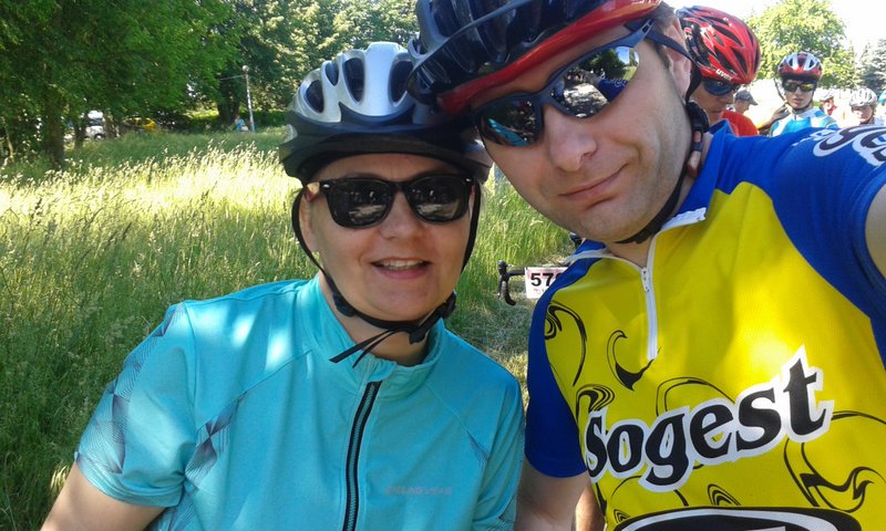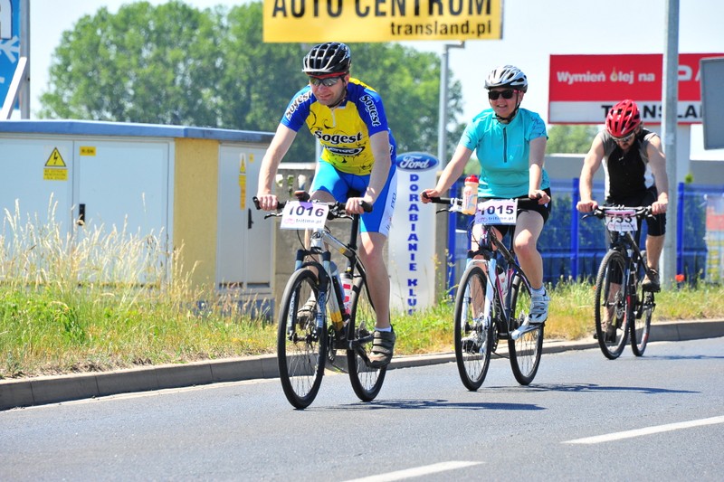 Jak zaczynać sezon rowerowy, to czemu nie z grubej rury!!! 90km po szosie, to nie byle jaki wyczyn dla mnie. Jednak wbrew pozorom nie byłam w tak optymistycznym nastroju bojowym. Bolało mnie znowu gardło i zanosiło się, że pojedziemy jedynie dystans krótki – 30km. Zresztą 90km, to w życiu chyba nie przejechałam – raczej nie pamiętam takiego osiągnięcia życiowego. W przeciwieństwie do Pawełka, który przed kilkoma latami w tym maratonie uzyskał 2 miejsce OPEN w kategorii rowerów innych (czyli nie na szosówce, tylko na rowerze MTB). Do 20km, gdzie był zjazd na dystans „mini” i zostało raptem 10km do mety uznaliśmy, że jednak Leszno jest zbyt daleko, żeby przyjechać na tak krótki dystans 30km, a poza tym forma i kondycja była dobra. Średnia prędkość do około 50-60 km była około 27km/h, więc jak na nasze rowery bardzo dobra. W takim tempie byłoby nawet podium, ale niestety z każdym kilometrem siły słabły, a temperatura powietrza wzrastała, tak, że już po 3 godzinie jazdy było ponad 34 stopni temperatury powietrza i jeszcze więcej od nagrzanego asfaltu. Po 60 km zaczęłam odpuszczać, tak że jechaliśmy momentami 17km/h. Należało tylko dojechać do mety. Paweł ratował mnie psychicznie i dodawał otuchy, że przejedziemy bezpiecznie. Co nastąpiło w końcu po 3 godzinach i 48minutach. Było ciężko! Przyjechaliśmy około 700 miejsca na 730 zawodników. Oczywiście przygoda bardzo fajna. Będziemy sympatycznie wspominać ten maraton, a ja mój wyczyn 90km. Pewnie na pobicie takiego rekordu jeszcze długo poczekamy :)