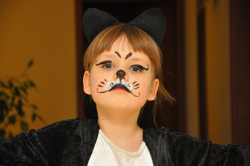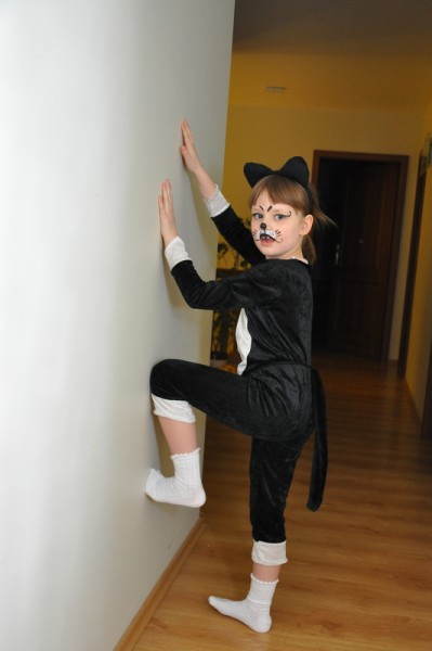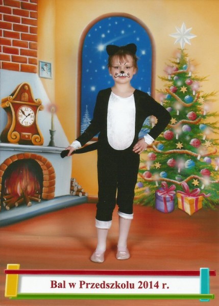 W tym roku Julia zapragnęła na balu karnawałowym w przedszkolu zostać czarnym kotkiem. Wyglądała jak jej ulubiona maskotka – czarny kotek w białych skarpetkach z białym krawacikiem. Po wcześniejszej próbie „makijażu” w dniu balu Julia już przygotowana w stroju kotka poszła do przedszkola, gdzie koleżanki – księżniczki – zadziwiła swoim słodkim przebraniem, a humor dopisywał Julci cały dzień.