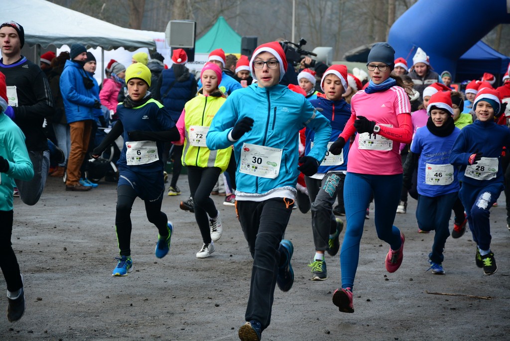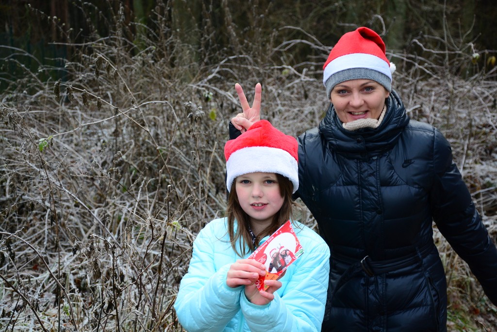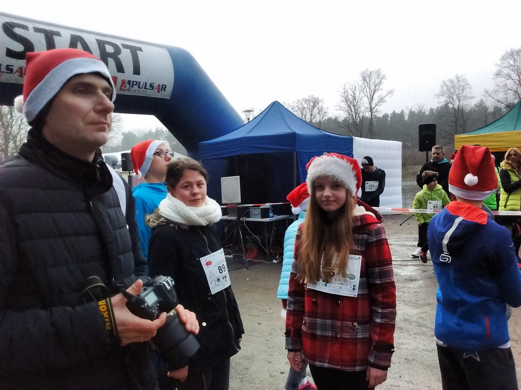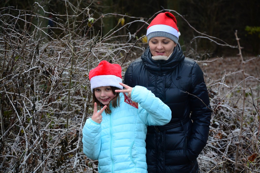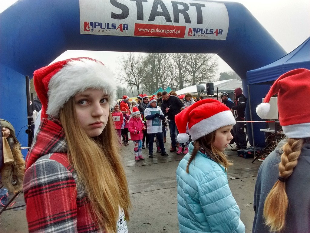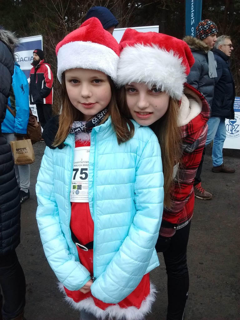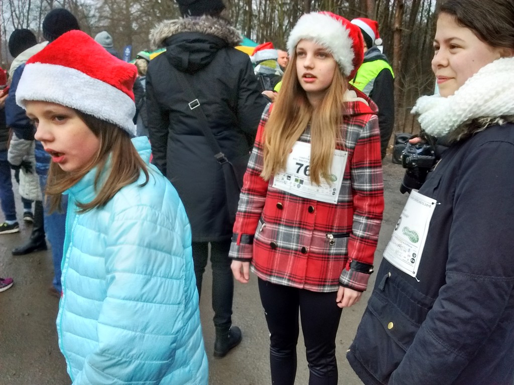 Dziewczyny dzisiaj wzięły udział w charytatywnym Biegu Dobrych Mikołajów na rzecz dzieci chorych. Miały do pokonania 1km ścieżkami leśnymi przy stawie na Dzikiej Ochli, czyli zaledwie kilka kroków od naszego domu. Julia i Marlenka były w tej samej grupie wiekowej, więc biegły razem. Tyle, że Julia ustawiła się w pierwszym rzędzie, a Marlenka w ostatnim. Obie miały stroje mikołajkowe, choć Marlenka ostatecznie tak zmarzła przed biegiem, że nie odważyła się zdjąć kurtki. Po biegu zaraz wróciliśmy do domu rozgrzać zmarznięte ręce.