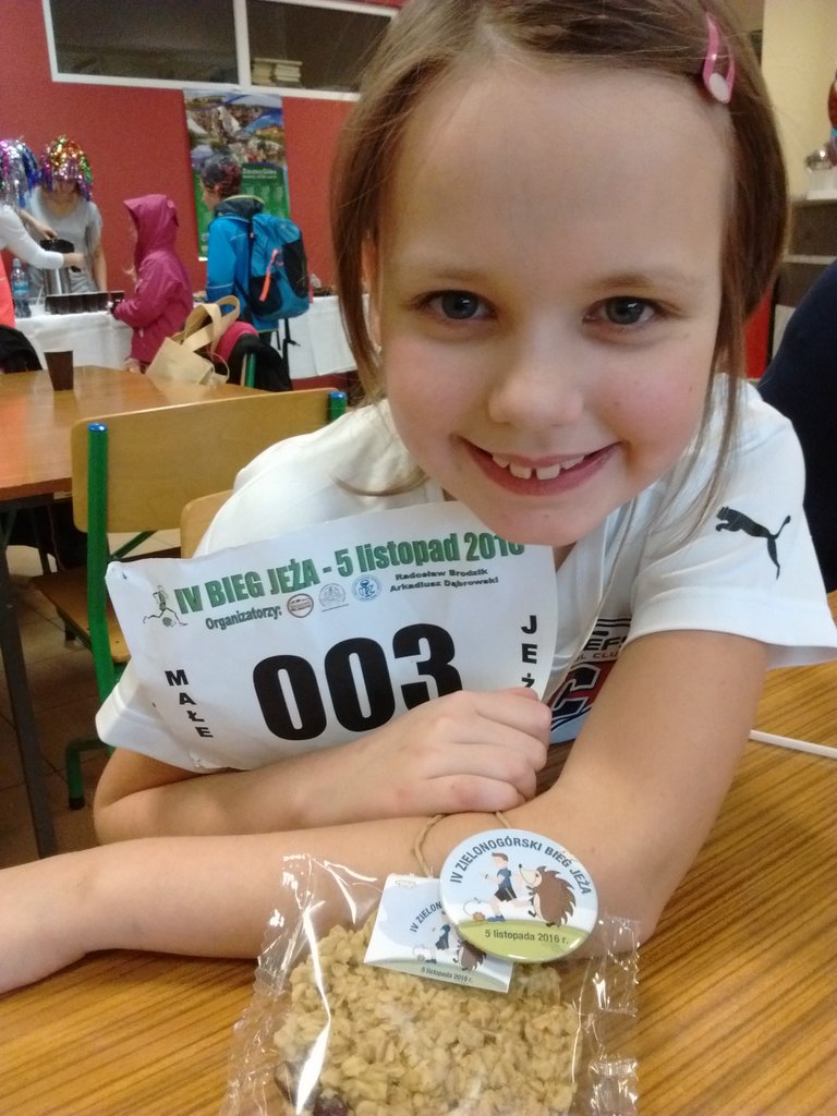 Julia wystartowała dzisiaj w Biegu Małego Jeża, podczas którego zbierane były datki na schronisko dla zwierząt.