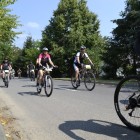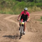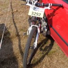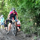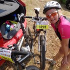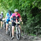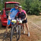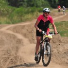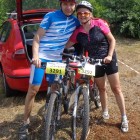 Okazało się, że najgorsze były początki. Tłum ponad 400 osób musiał „ulokować się na trasie”, co oznaczało wielki chaos, ponieważ cała chmara ludzi wystartowała w jednym momencie, nie tak jak na dotychczasowych maratonach w odstępach czasowych. W dodatku organizatorzy „zrobili ukłon” dla kobiet lokując je na starcie w III sektorze więc, mniej więcej w połowie peletonu. Już od początku tak się zestresowałam, że puszczałam wszystkich przodem. Po 8 kilometrach nabrałam większej odwagi i w końcu jechałam szybciej i szybciej. Poczułam więcej siły i powoli przesuwaliśmy się naprzód, wyprzedzając i kobiety i mężczyzn. Na pierwszym pomiarze czasu, na 13,5 km, traciłam do najlepszej zawodniczki z Teamu radia ESKA 6 minut i 36sek, a na dalszych 18 km prawie tyle samo, co oznacza, że 2 minuty i 12sek podgoniłam na 18 km (nie podaję moich „skomplikowanych” obliczeń, ale statystyka poprawiła humor :)). Ostatecznie straciłam do pierwszej zawodniczki 13 min 21 sekund. To tez mi dało do myślenia, że różnice czasowe między zawodniczkami do 3 minut są jeszcze do zniwelowania, ale ponad 10 to już „przepaść” nie do odrobienia. Co więcej przypuszczam, że te 2 minuty to dzięki Pawełkowi, bowiem na asfalcie kawałek jechaliśmy w tzw. „pociągu” prawie 38 km/h, gdzie ja takiej prędkości nawet nie osiągam jadąc samodzielnie. Dogoniliśmy wtedy grupkę dziewczyn i na wjeździe do lasu wzięliśmy ostry zakręt wyprzedzając je wszystkie. Potem, już w lesie, trzeba było mocniej pociągnąć, żeby zgubić dziewczyny, co się udało. Niestety straciliśmy przewagę w wielkich kałużach błota. Jedną trzeba było przejechać, nie dało się ominąć, a błoto sięgało kostek. Zresztą w tej kałuży utknął jakiś terenowy samochód, który był zanurzony prawie do połowy!!! W końcówce zabrakło już sił na mocniejszy zryw i minimalnie przegrałam finisz o 6 miejsce. Paweł znowu miał fajny widok z boku :))) Po przekroczeniu mety czekał na nas bufet pełen owoców i wody oraz ciepły posiłek.