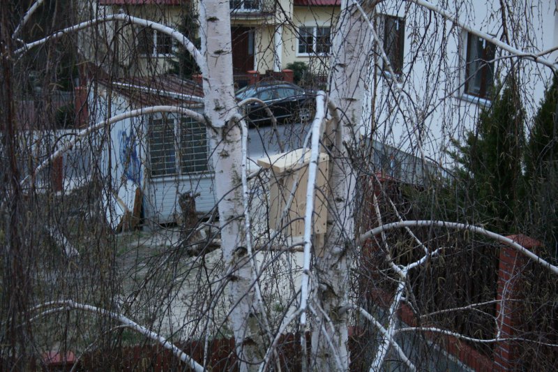 Na przydomowej brzozie często siadywały ptaszki, głównie sikorki bogatki, zwracając naszą uwagę swoim popiskiwaniem. W pewnym momencie padł pomysł – budujemy budkę! Akcja musiała być szybka ponieważ ptaszki lada chwila będą szukały miejsca na budowę gniazdka. Deseczka zakupiona w pobliskim tartaku, trochę narzędzi i lekko zmodyfikowany projekt znaleziony w internecie przerodził się w ciągu godziny w całkiem ładny domek. Budka wisi już na brzózce, a my mamy nadzieję, że jakaś ptasia rodzinka się do niego wkrótce wprowadzi. :-)