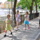 Mieliśmy w tym roku w Jesionce wyjątkowe szczęście do pogody. Było upalnie i słonecznie. Codziennie objeżdżaliśmy nasze jezioro dookoła na rowerach. Dziewczyny wspaniale sobie radziły. A w nagrodę, i dla naszej wakacyjnej przyjemności, wstępowaliśmy po drodze na gofra lub lody.