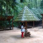 Byliśmy też w starej wiosce indiańskiej, gdzie pokazano nam jak Indianie wyplatali kosze, ostrzyli groty, wypalali kanu ((łodzie), tkali sukna, robili piękne ozdoby. Mogliśmy poznać ich instrumenty muzyczne. Były to w większości instrumenty perkusyjne. Zachwyciliśmy się też jak wyglądała ich tradycja, ciekawa hierarchia, a także jak szanowane były kobiety. My jako dzieci byliśmy zachwyceni życiem Indian zgodnie z naturą, poznając ich przez książki, czytając „Winnetou” :-), ale już pokolenie Marlenki i Julii niestety tej historii nie poznałyby, gdyby nie nasza wycieczka…