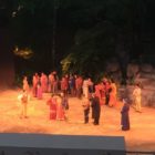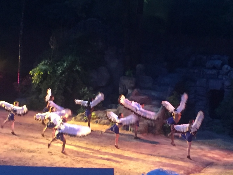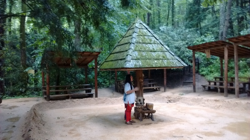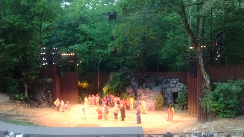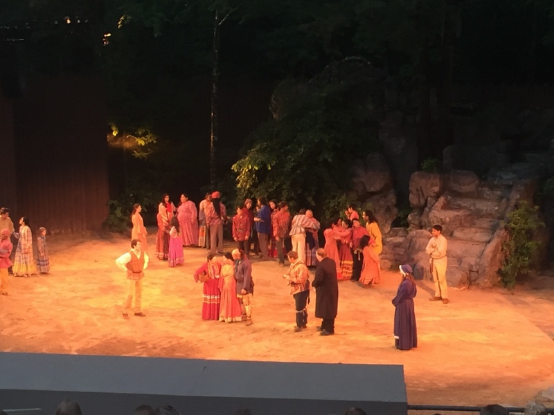Dotarliśmy do miasta Cherokee. To tutaj mieszka najliczniejsze plemię Indiańskie w Stanach Zjednoczonych Czirokezi pierwotnie wywodzący się od Irokezów i kiedyś zamieszkujący podgórskie, zachodnie obszary Karoliny Południowej i Północnej, północną Georgię i wschodnie Tennesee. Później, jak wikipedia pisze „większość jego członków zostało przymusowo przesiedlona na inne tereny płaskowyżu Ozark”. W rzeczywistości zmuszeni byli do opuszczenia swoich domostw i terenów, które od wieków należały do nich. W tzw. „Pochodzie płaczu” wygnani w cierpieniu przemierzyli ponad 1000 mil na nowe tereny. Nigdy się z tym nie pogodzili i wielu po latach wróciło. Wielu pozostało, płacąc za to życiem. Tę wzruszającą historię oglądaliśmy na wspaniale przygotowanym przez tutejszych rdzennych Indian przedstawieniu teatralnym.
