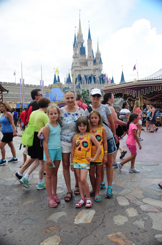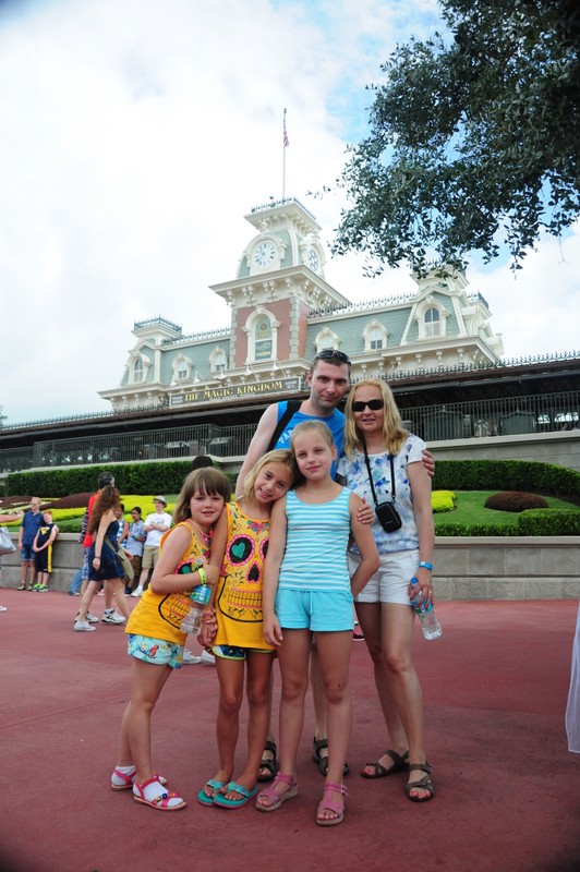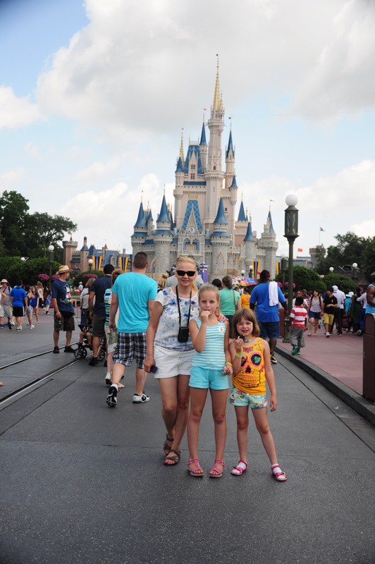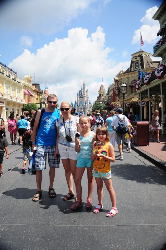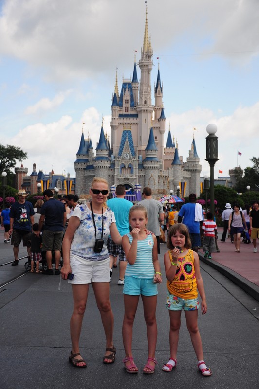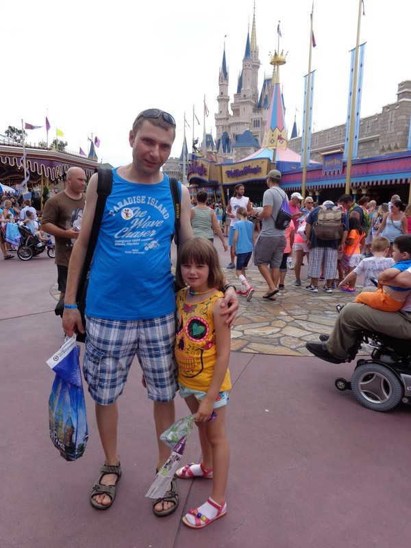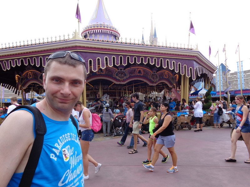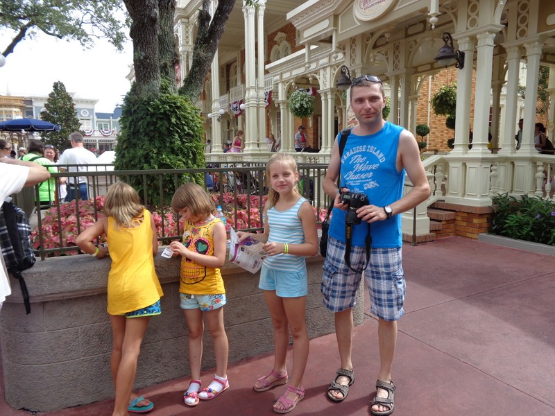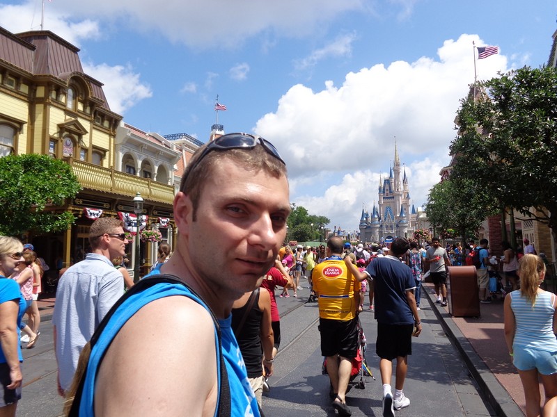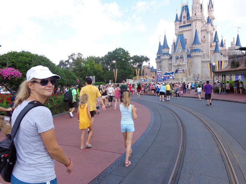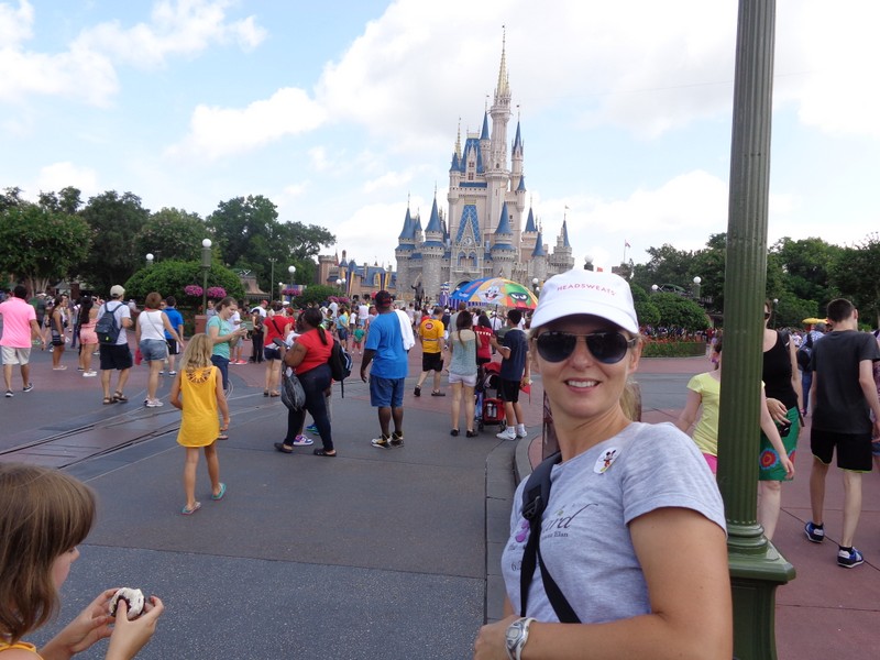 Pierwszy dzień na Florydzie w Orlando zaczynamy największą atrakcją – Disneyland – Magic Kingdom. Dojeżdżamy do Disneylandu autobusem, a potem przez jezioro przewozi nas prom. Już z daleka widzimy słynny znany zamek z „czołówki” Disneya. Od rana jest bardzo upalnie, a wokół pełno ludzi. Już od początku wiemy, że nie będziemy w stanie wszystkiego zobaczyć, więc nastawiamy się jedynie na największe atrakcje.