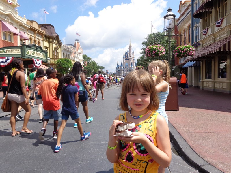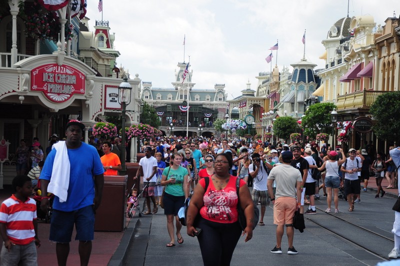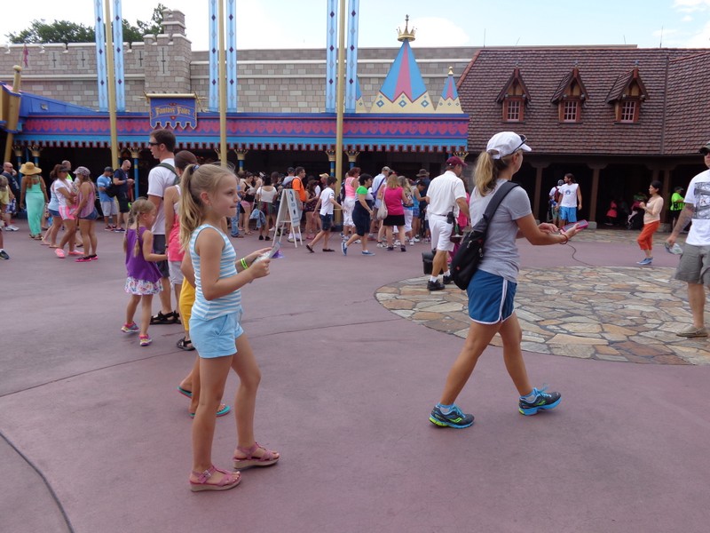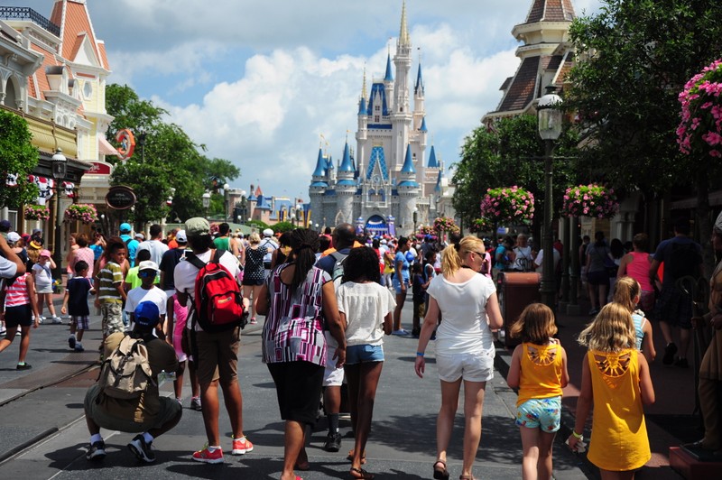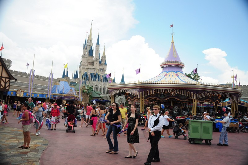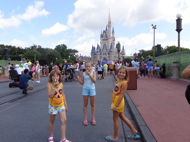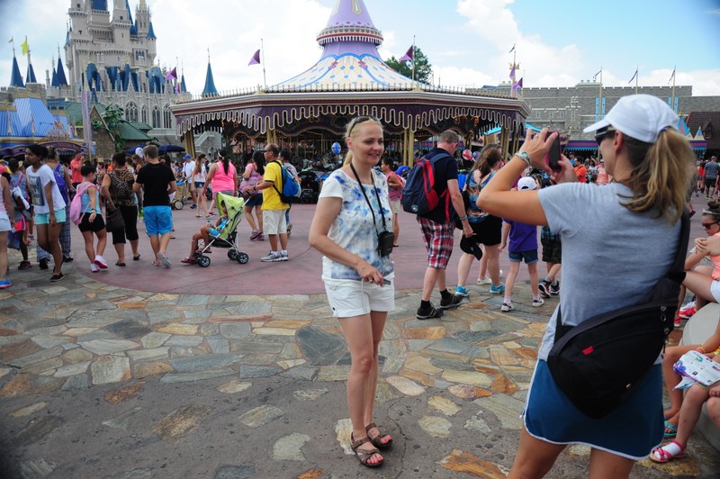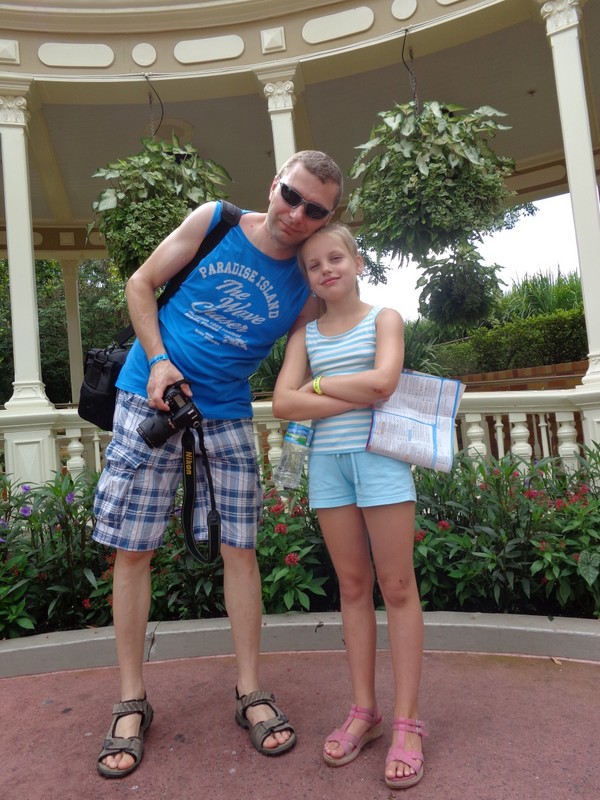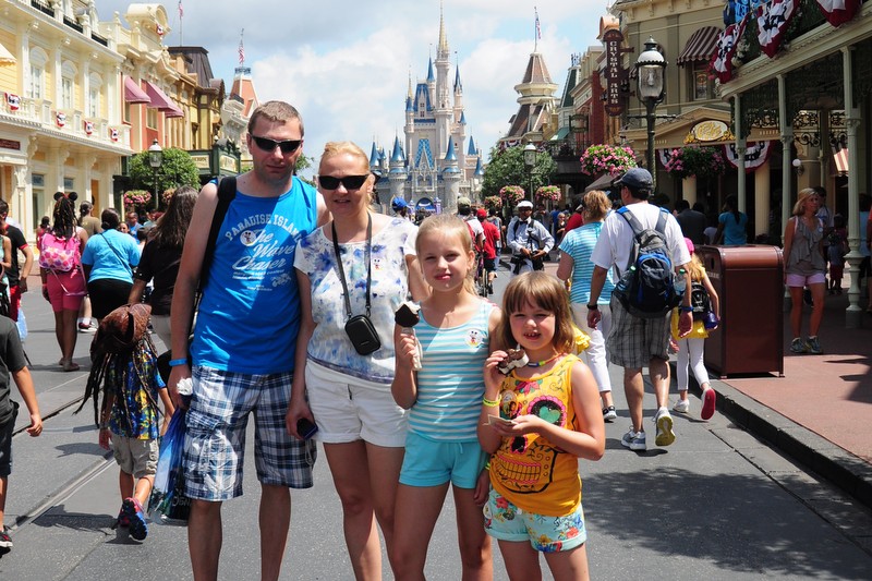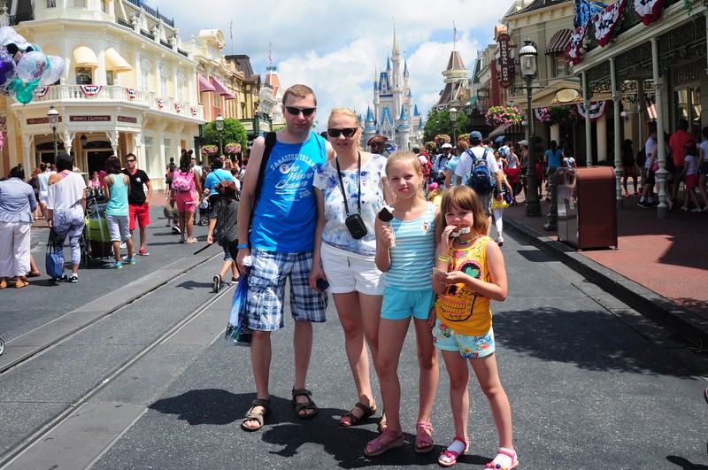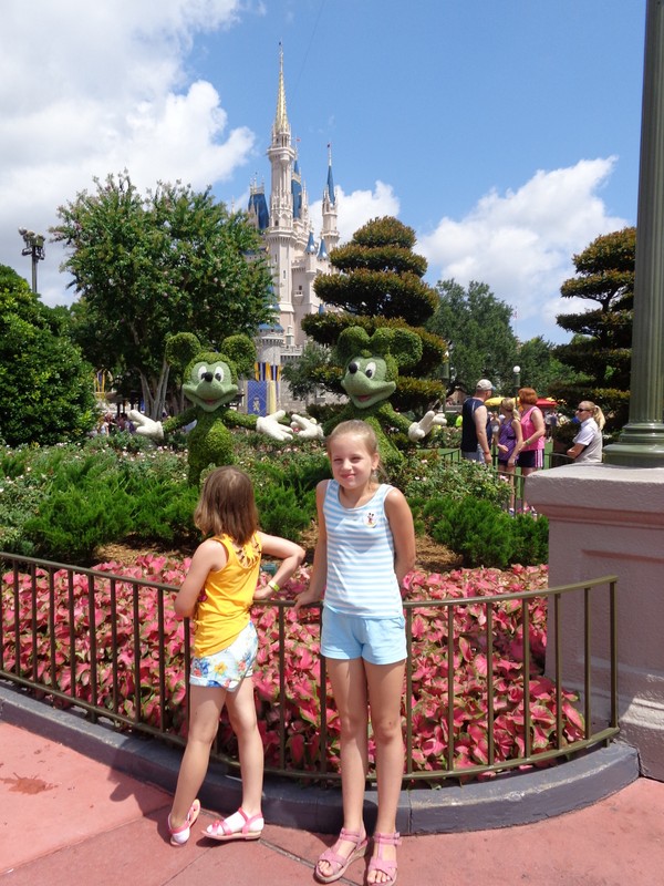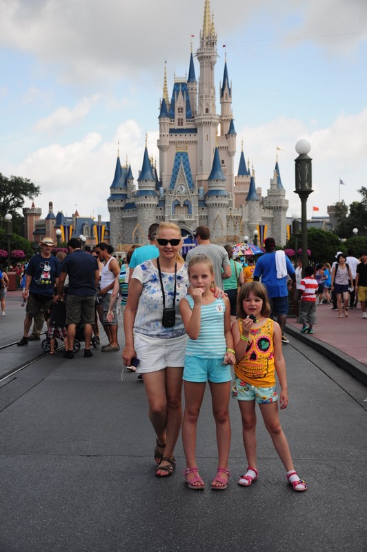 Pierwszy dzień na Florydzie w Orlando zaczynamy największą atrakcją – Disneyland – Magic Kingdom. Dojeżdżamy do Disneylandu autobusem, a potem przez jezioro przewozi nas prom. Już z daleka widzimy słynny znany zamek z „czołówki” Disneya. Od rana jest bardzo upalnie, a wokół pełno ludzi. Już od początku wiemy, że nie będziemy w stanie wszystkiego zobaczyć, więc nastawiamy się jedynie na największe atrakcje.
