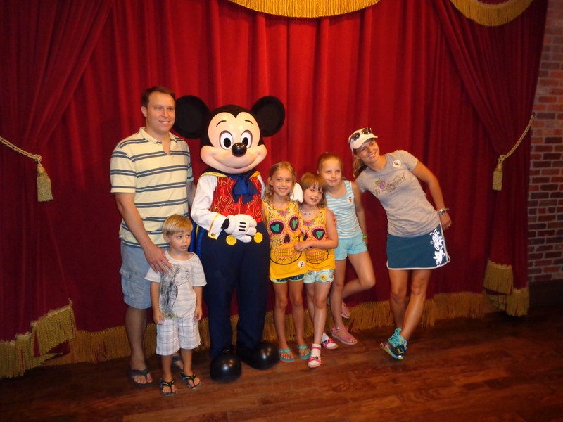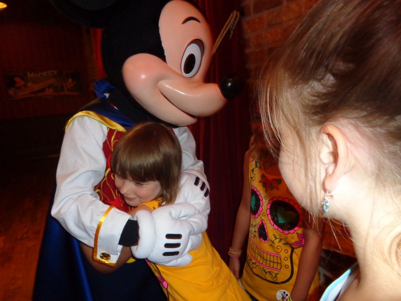 W pierwszej kolejności witamy się z Myszką Miki. Żeby wejść do jego domu, przywitać się i zrobić zdjęcie trzeba poczekać pół godzinki. To taki sprawdzian, przed kolejnymi kolejkami do atrakcji. Wszędzie trzeba cierpliwie czekać, dziewczyny są starsze więc to rozumieją, Łukaszek o dziwo tez sobie nieźle z tym radzi.