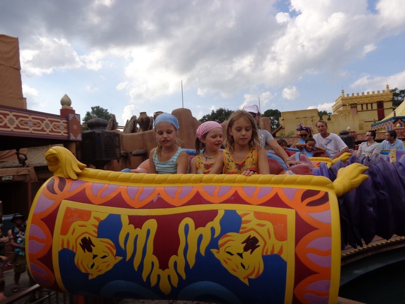 W Adventureland polataliśmy na dywanie Alladyna na karuzeli, a potem wybraliśmy się na Jungle cruise, czyli wycieczkę po rzece w Jungli. Na koniec dnia zdążyliśmy tez pójść do Jacka Sparrowa z „Piratów z Karaibów”, ale ten show jako jedyny nie wywarł na nas pozytywnego wrażenia – za dużo czaszek i straszności!!!