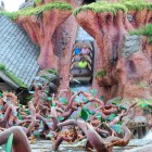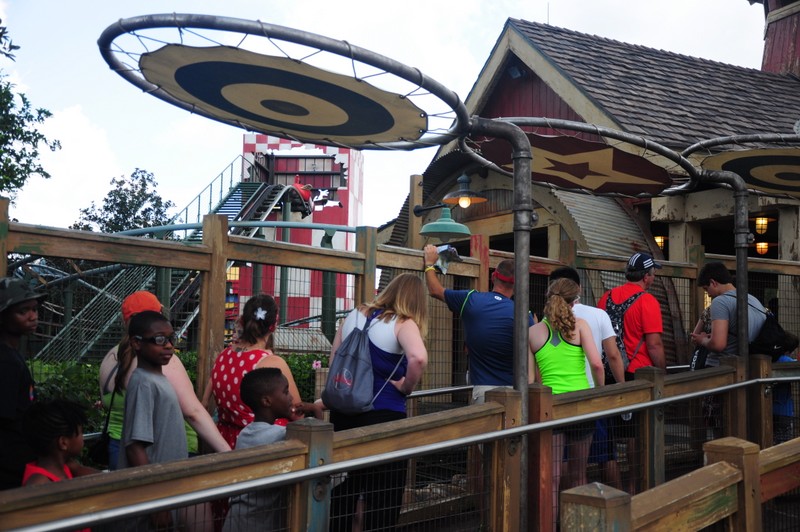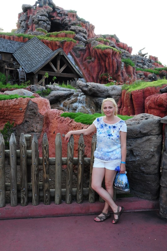 W Frontierland trzeba koniecznie być na Splash Mountain. Jest to kawałek drewna – roler koster, którą się płynie w wodzie, po czym z wysokości spada w dół. Na atrakcje czekaliśmy w upale ponad godzinę, ale jakoś nikt z nas nie żałował i te kilka chwil zabawy było naprawdę fajne. Oczywiście wysiedliśmy cali mokrzy, a to była dla nas dodatkowa atrakcja. Film ze Splash Mountain nakręciliśmy kamerką GoPro, więc można zobaczyć nasza radochę.