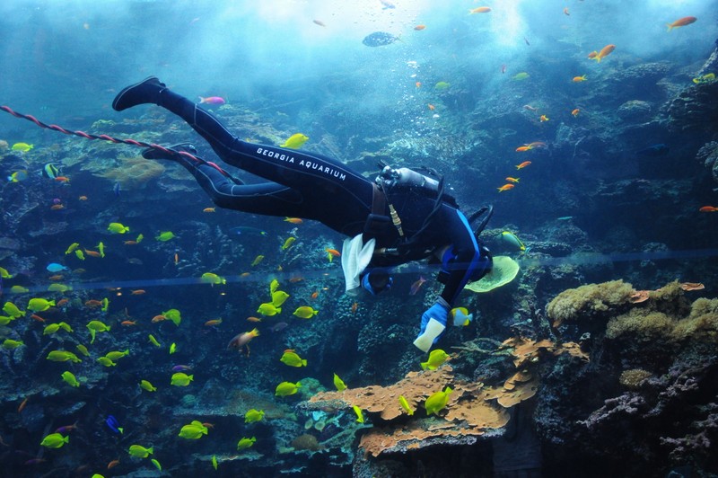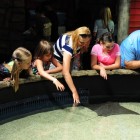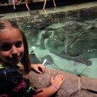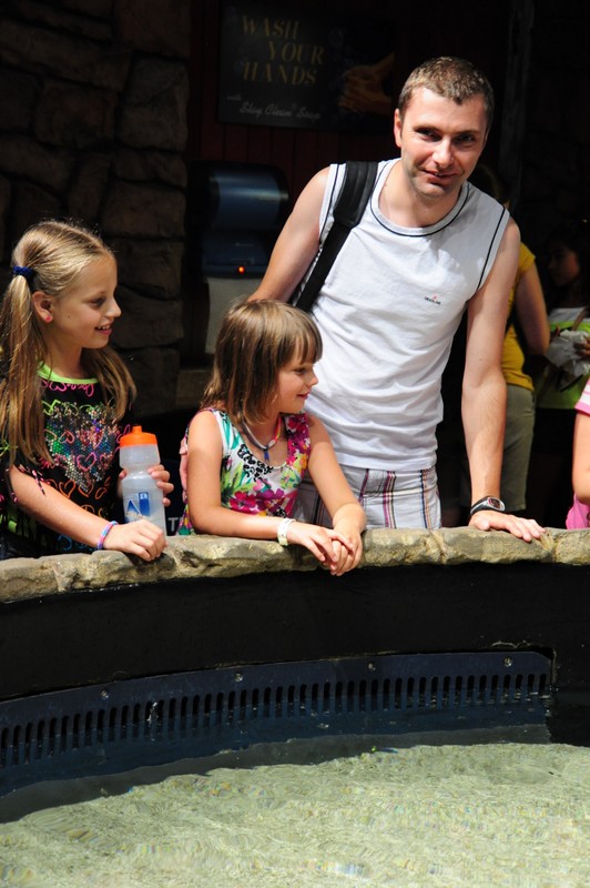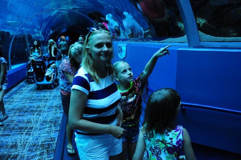 Georgia Aquarium w Atlancie jest jednym z największych akwariów na świecie. Znajduje się w centrum miasta. Dojechaliśmy tam po drodze filmując ulice Atlanty. To kolejne niezapomniane miejsce, do którego wraca się z ogromną przyjemnością, doznając wielu wzruszeń i ciesząc się widokiem zwierząt i ryb morskich, które możemy oglądać jedynie w telewizji lub w kinie. Akwarium jest zorganizowane i przyjazne dla najmłodszych. Dzieci mogą podziwiać ryby jednocześnie poznając ich nazwy. Przed ogromnymi akwariami za potężną szybą odnajdują ryby opisane na kartach. Julcia z Marlenką przyszły się pochwalić, że wszystkie ryby z karty odnalazły. A były tam i wielkie płaszczki, ryba młot, wieloryby i wiele kolorowych mniejszych i większych o dziwacznych kształtach ryb. Dalej oglądaliśmy pingwiny, foki, białe aligatory, fantastyczne różnego rodzaju meduzy, piękne lion fish. Płaszczki i rekinka można było także dotknąć paluszkiem, wkładając do akwarium rękę. Na szczęście rekinek był mały i nikt się go nie bał, nawet Juleczka. :)