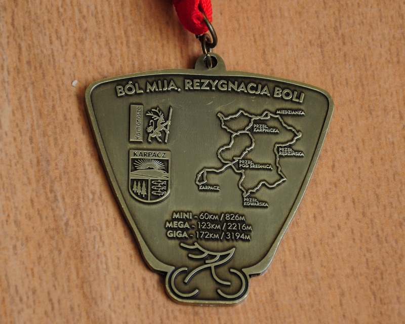 Muszę wtrącić jeszcze kilka słów od siebie. :) Był to nasz 4 maraton w tym roku, ale pierwszy górski. Profil trasy był dość wymagający. Dwa, ponad 5km, podjazdy w końcówce i ponad 800m przewyższenia potrafi mocno zmęczyć, ale byliśmy dobrze przygotowani i wiedziałem, że jeśli będziemy jechali rozważnie, pamiętając o nawadnianiu i odżywianiu to przejedziemy cały dystans w dobrej kondycji. Tak też się stało. Ostatecznie przyjechaliśmy na metę z czasem 2h35’20” co dało Monisi 2. miejsce w kategorii wiekowej! Gratuluję Monisiu! :)