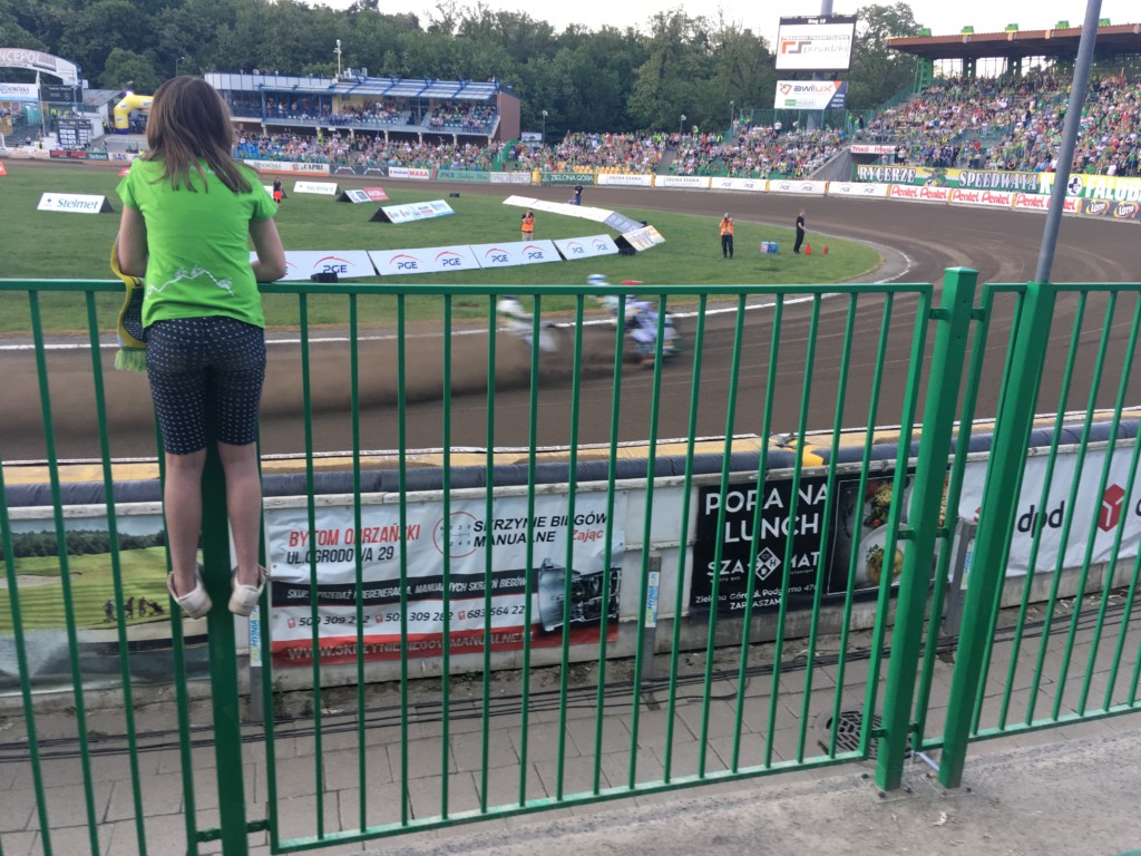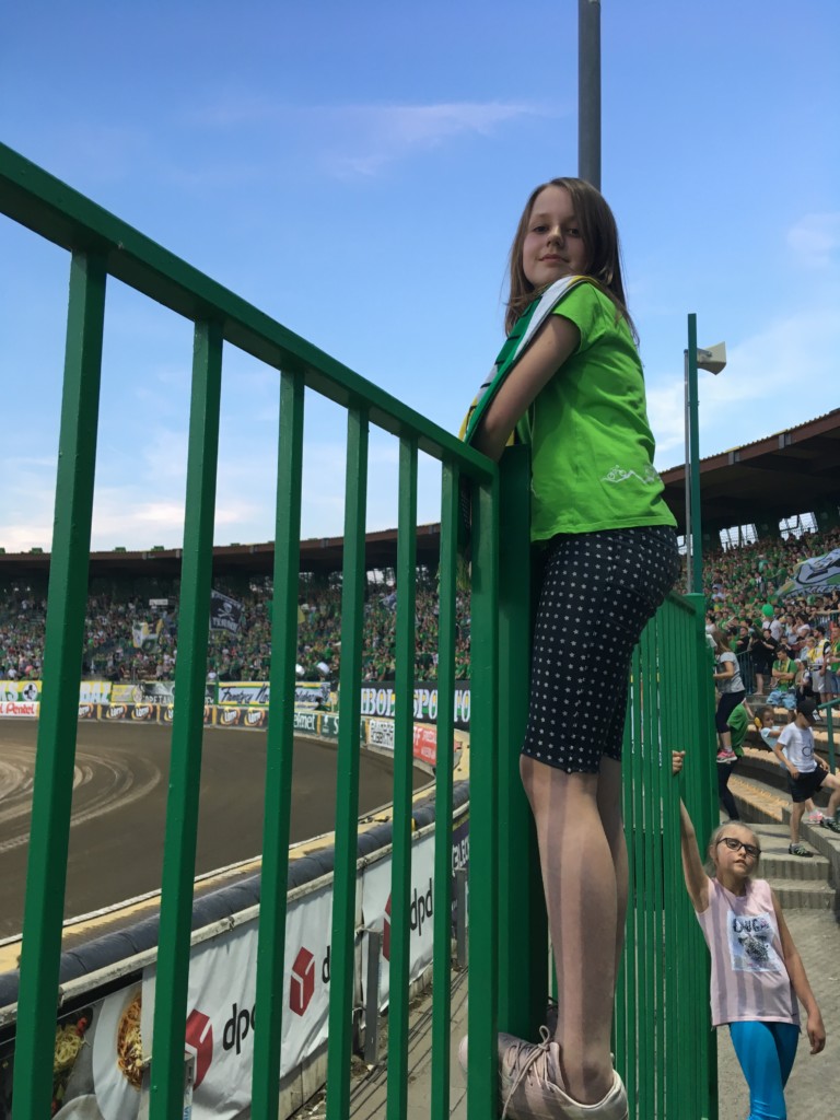 Tak kibicujemy naszym Żużlowcom. Jeśli ktoś chce poczuć ducha jednomyślnego tłumu, niech przyjdzie na mecz Falubazu. Energia jest eksplodująca. Można śpiewać „Hej Falubz tralalala…” i inne. Trzeba unikać sektorów dla kibiców Falubazu, bo można wrócić do domu na wpół głuchym. Jest 15 rund. Przed wystartowaniem sędzia mówi coś w stylu: „Sponsorem biegu 3 jest Bodzio”. Każdy bieg to 4 okrążenia. xd