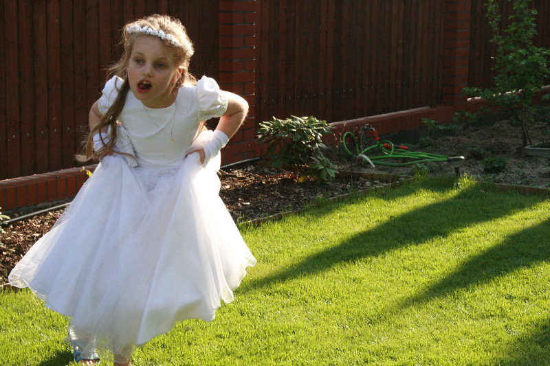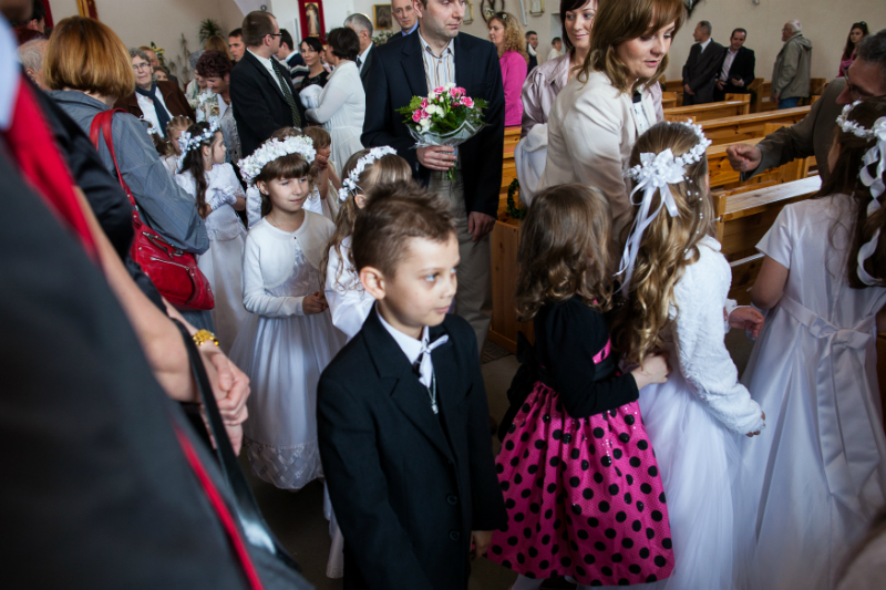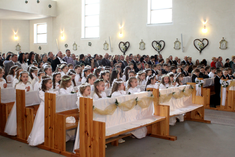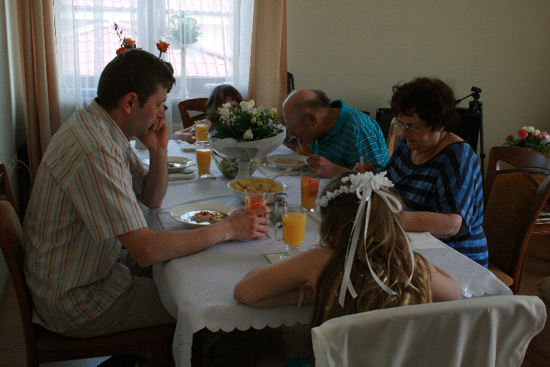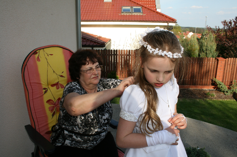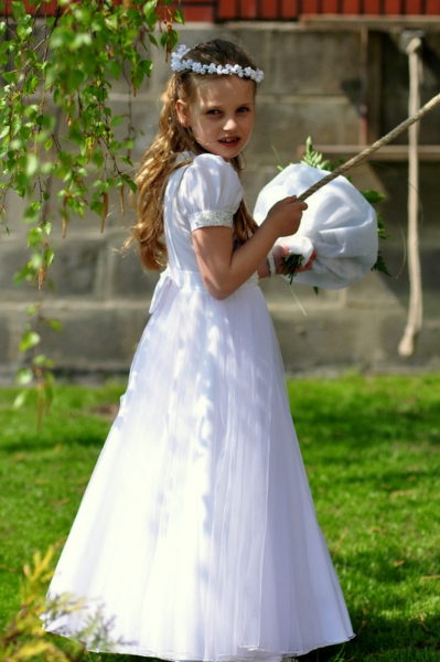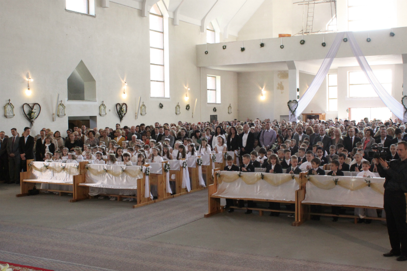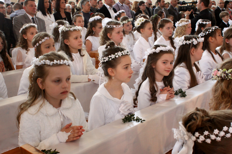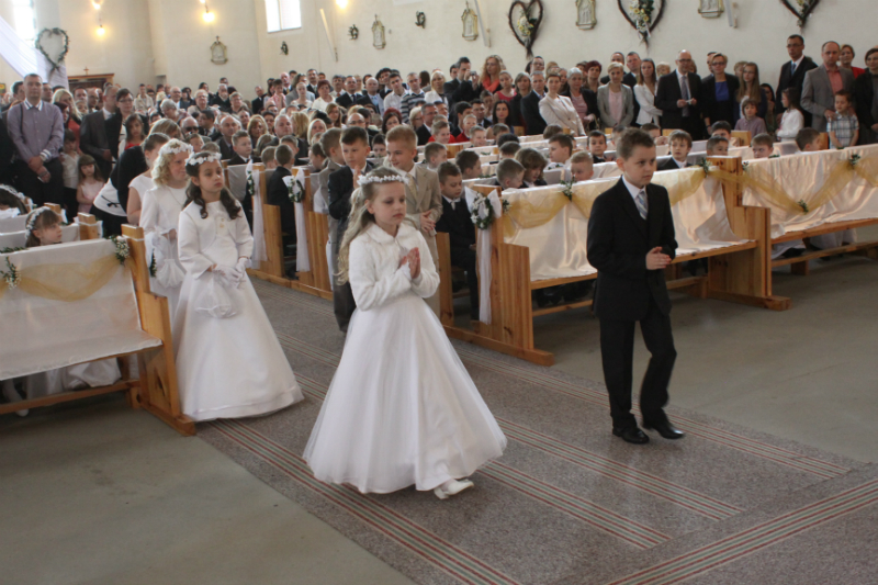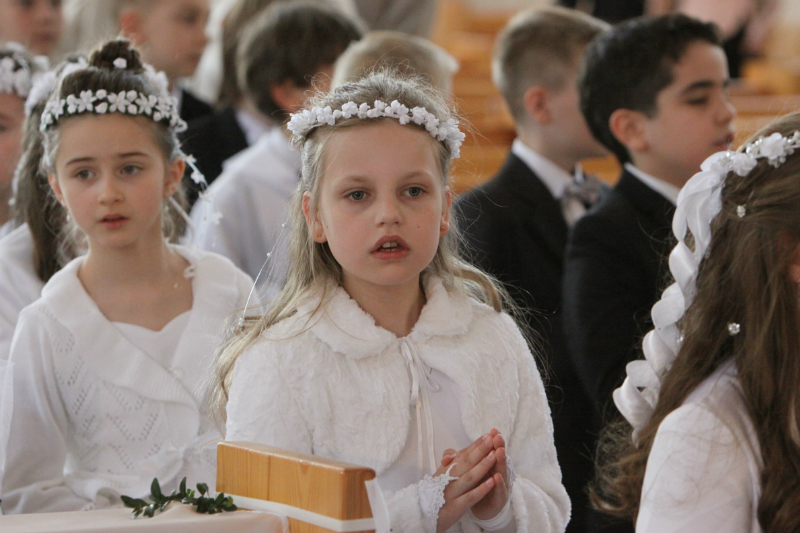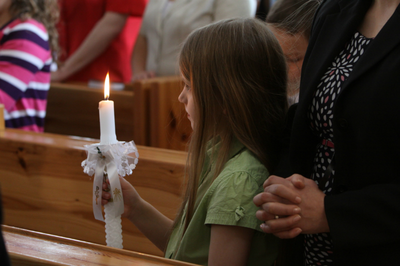 5 maja, w niedzielny poranek, o godz. 10:00 w Kościele Matki Bożej Nieustającej Pomocy nasza kochana córeczka Marlenka po raz pierwszy przyjęła do serca Pana Jezusa w sakramencie Eucharystii pod postacią opłatka komunijnego. Był to dla Marlenki bardzo ważny i wyczekiwany moment, do którego przygotowywała się od roku na mszach niedzielnych, na lekcjach religii, próbach oraz w domu po przez wspólne rozmowy, czytanie tekstów bibilijnych oraz poznawanie nauki Jezusa Chrystusa. Marlenka, jak nam powiedziała, chce być uczniem Wielkiego Nauczyciela, a Komunia Św. ją do tego pięknie przybliżyła, co nas bardzo cieszy.