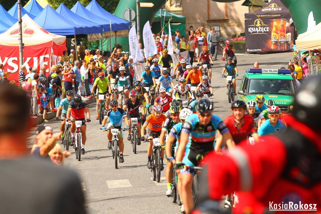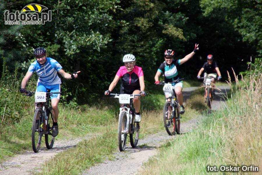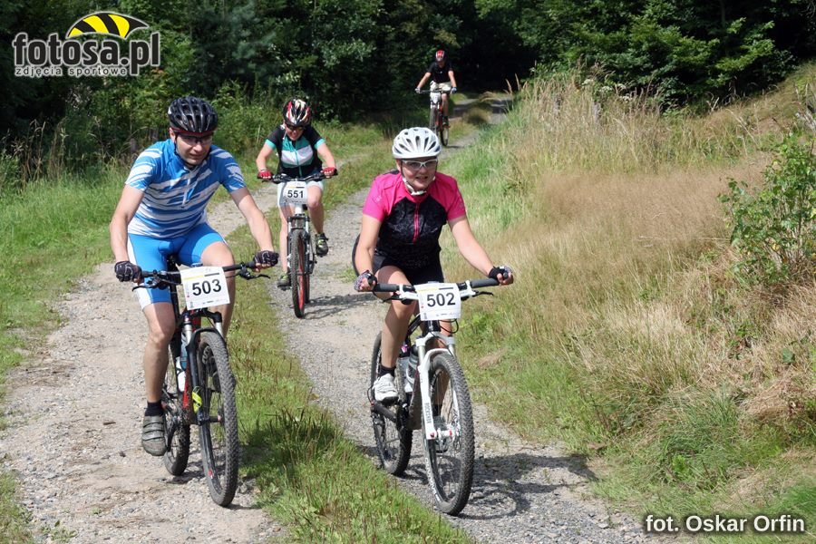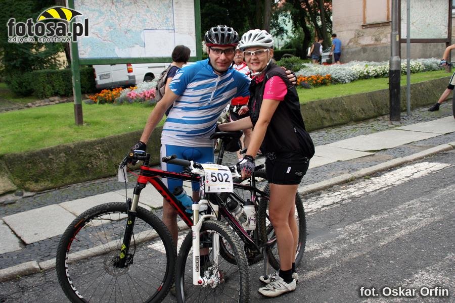 W krótkim czasie, bo w niecały tydzień przed zawodami, zdecydowaliśmy się na wzięcie udziału w Pierwszym Maratonie MTB Kargula i Pawlaka w Lubomierzu. Niestety w tym roku trudno o jakiekolwiek i gdziekolwiek nocleg więc w samym Lubomierzu nie udało nam się go znaleźć. Jeden wolny pokój Monisia znalazła w Świeradowie Zdroju, gdzie wybraliśmy się już dzień wcześniej. Na miejscu okazało się, że pogoda nie jest najlepsza do jazdy. Było pochmurnie i zimno, a w noc poprzedzającą start zaczął padać deszcz. Rano jednak rozpogodziło się. Po deszczowym piątku pogoda w sobotę zaskoczyła wszystkich. Zrobiło się ciepło i słonecznie (choć na trasie widać było ślady ostatnich opadów). Start nastąpił uroczyście z lubomierskiego rynku. Już na samym początku elita nam „odjechała”. Pierwsze 5 km miało być spokojnie za pilotem, niestety wszyscy ruszyli maksymalnym tempem, co spowodowało, że zostaliśmy na trasie nieomal sami. Dzięki temu nie było stresujących sytuacji.