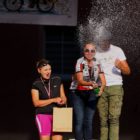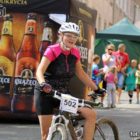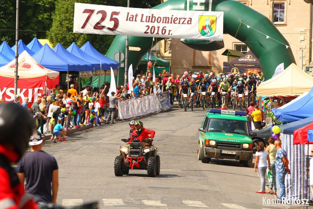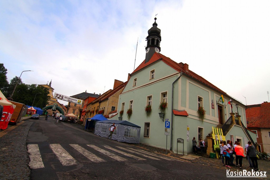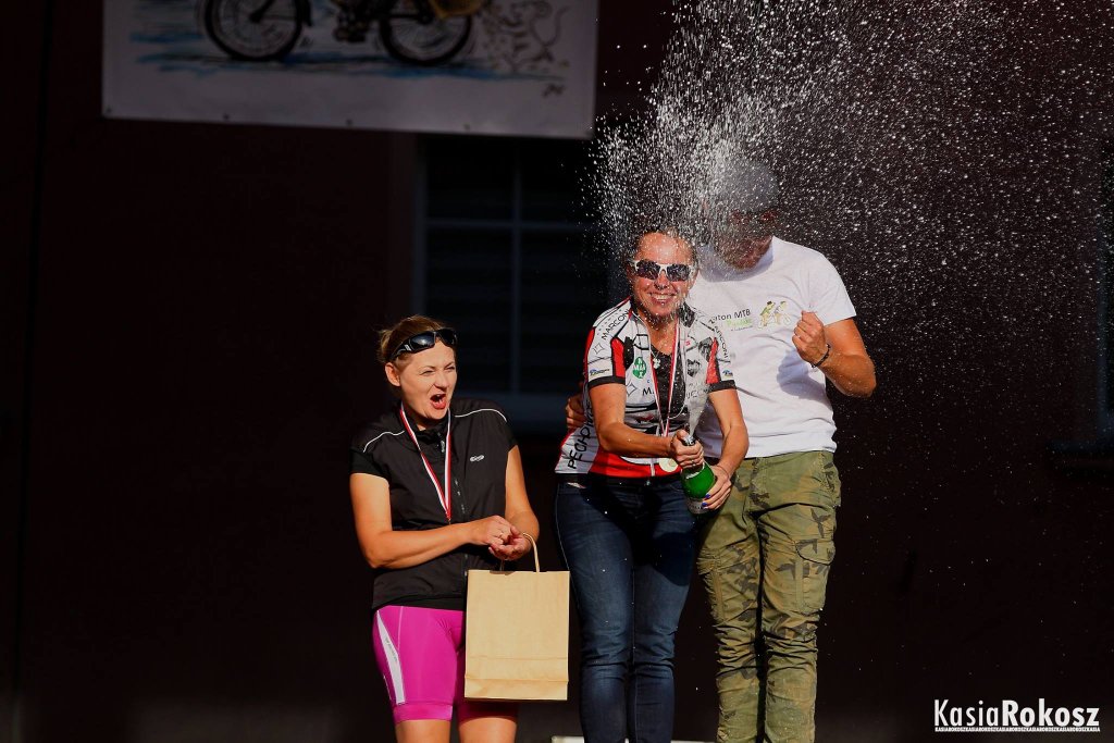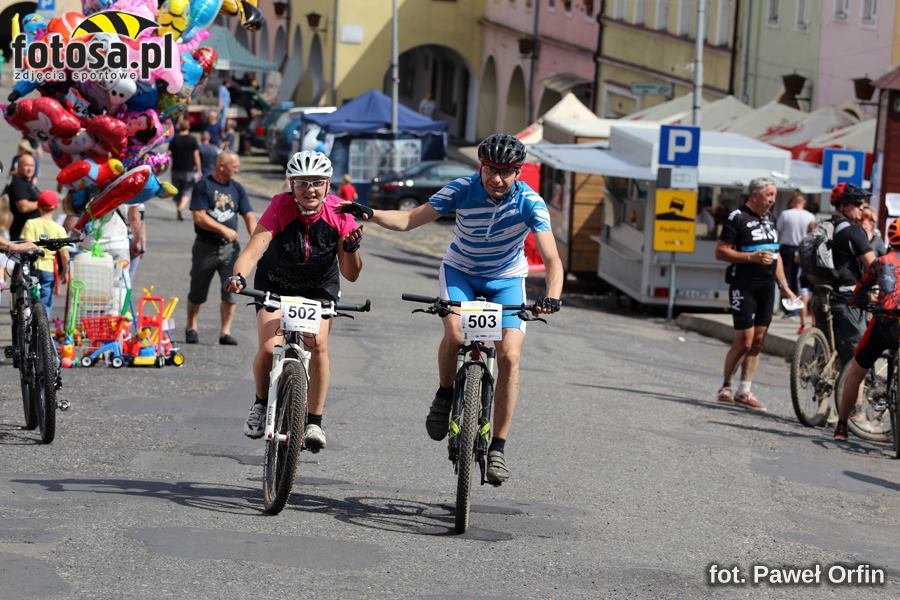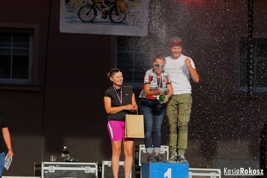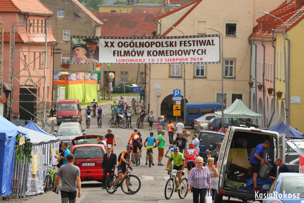 Po 41 km w końcu dotarliśmy do mety razem z Pawełkiem trzymając się za ręce. Po raz pierwszy nieistotne było miejsce, ale sam fakt pokonania górskiej trasy. Wjeżdżaliśmy do Lubomierza jak zawodowi kolarze do mety w centrum miasta ;-) Dekoracja zwycięzców odbyła się w sposób uroczysty. Na ogromnej scenie na rynku były dekorowane wszystkie kategorie wiekowe, w tym też moja kobiet od 40-50 roku. Dzięki Pawełkowi stanęłam na 2 miejscu podium, ponieważ to on całą drogę mnie wspierał i rozsądnie zaplanował rozłożenie sił. Maraton połączono z obchodami 725 lecia miasta Lubomierz i Festiwalem Filmów Komediowych. Było więc wielu przypadkowych widzów, nie tylko uczestników samego maratonu. Można było też spotkać znanych polskich aktorów. Przypadkiem też, jak się później okazało, zaparkowaliśmy nasze auto dosłownie kilka metrów od miejsca gdzie filmowy Wicia z Samych Swoich, ujeżdżał niesfornego konia. Dziś w tym miejscu stoi niewielki pawilon spożywczy. W Lubomierzu na każdym kroku można odnaleźć ślady z filmu Sami Swoi.