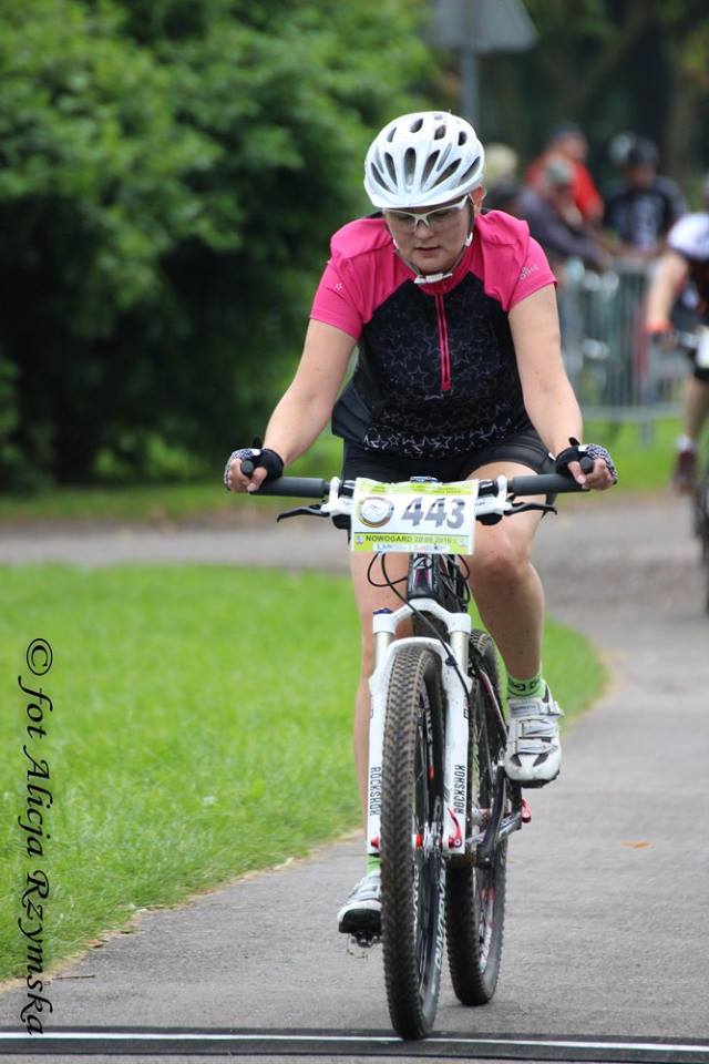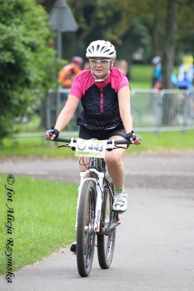 Do Nowogardu przyjechaliśmy dzień wcześniej, aby nie zrywać się wcześnie rano. Był dzięki temu czas na zapoznanie się z trasą. Pogoda była wspaniała. Słoneczko zachodziło nad jeziorem i jak na tegoroczne sierpniowe wieczory było bardzo ciepło. Spodziewaliśmy się takiej samej pogody nazajutrz. Niestety rano było pochmurno i padał deszcz. Na szczęście tuż przed startem kobiet przestało padać. Jakoś czułam, że to nie jest mój dzień do jazdy. Źle przespałam noc i brakowało energii. Na trasie pierwsze kółko przejechałam wyjątkowo dobrze i w szybkim tempie. Niestety sił brakowało i kolejne były już słabsze. W rezultacie zajęłam 21 miejsce wśród kobiet i 6 w kategorii wiekowej.