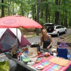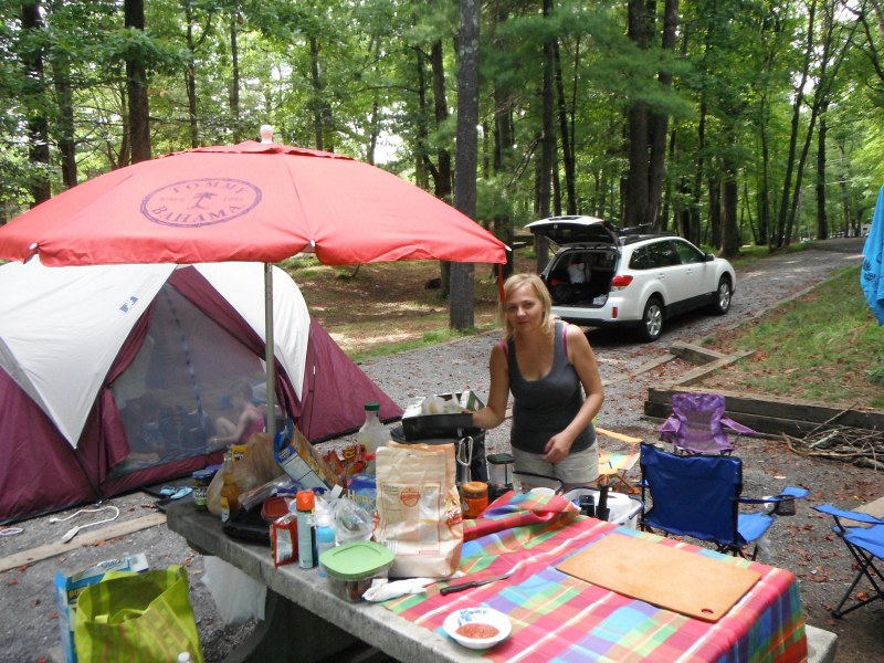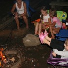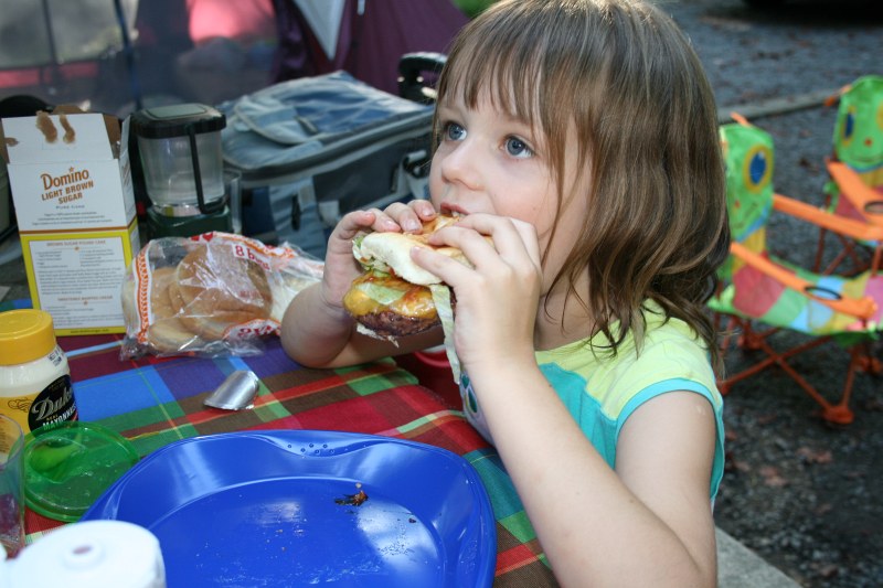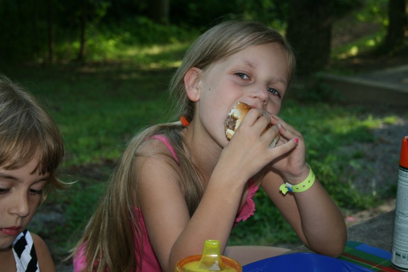 Po przyjeździe rozbiliśmy namiot i zabraliśmy się za przygotowanie hamburgerów. Dziewczyny w tym czasie zdobywały sprawność zbieracza opału na ognisko. Na wieczór zaplanowane były mashmallows – słodziutkie pianki, które podgrzewa się nad ogniskiem. Kiedy mashmallows są już w środku płynne, nakłada się je pomiędzy dwa wafelki z kawałkiem czekolady.
