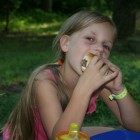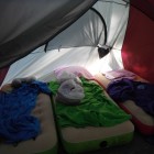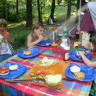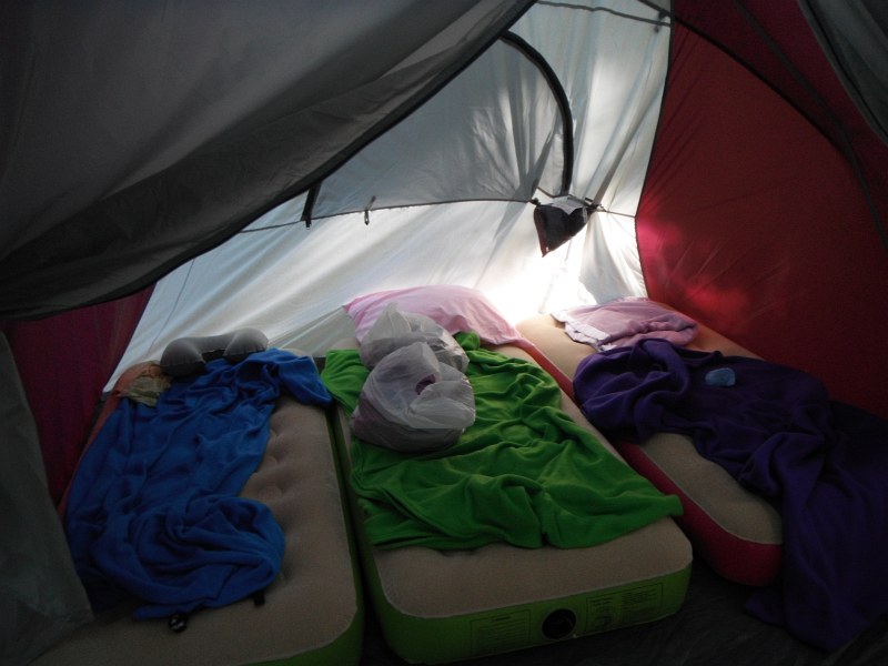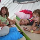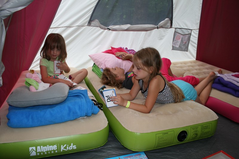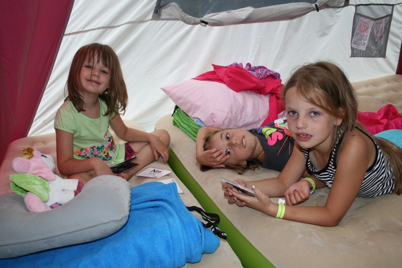 Noc w namiocie okazała się dla dziewczynek bardzo fajną atrakcją. Każda z nich miała swój materacyk i śpiworek, ulubionego pluszaka i wspólną latareczkę. Szybko usnęły, pomimo typowych dla „dzikich” miejsc nocnych odgłosów lasu i niedźwiadków, które na tym terenie były aktywne.