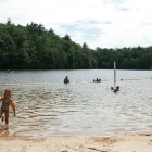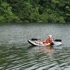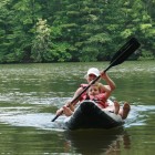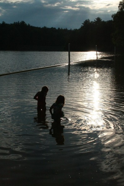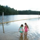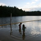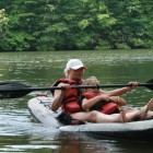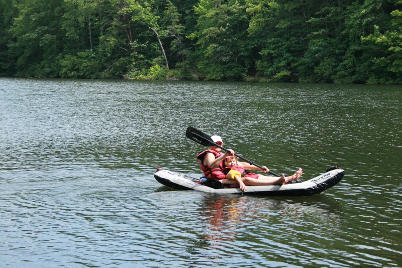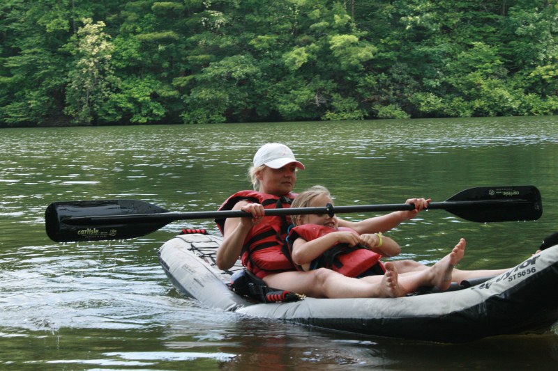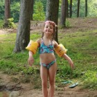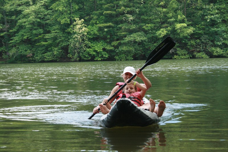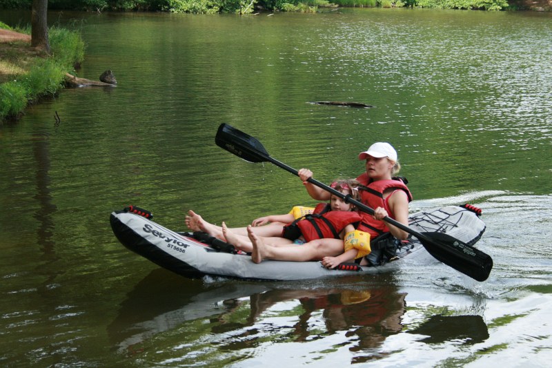 Popołudnie, już słoneczne, dziewczyny wykorzystały na kąpiel w jeziorze, a my z siostrą na zmianę popływałyśmy trochę kajakiem. Dziewczyny tez się załapały na rundkę kajakiem z nami po jeziorze. :)