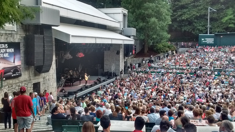 Josh Groban zażartował sobie jak wszedł na scenę, że czuje się jak na polu golfowym, wszyscy tak samo ubrani w polo i w krótkie spodenki ;-) I coś w tym było, ponieważ widzowie słuchali koncertu w bardzo luźnej atmosferze. Niektórzy przynieśli ze sobą całe lodówki i torby pełne jedzenia. Koncert zaczął się od występu Sarah Mclachlan -autorki piosenek, wokalistki, pianistki i gitarzystki. Po godzinie w końcu wyszedł na scenę Josh Groban -najwspanialszy baryton, przesympatyczny człowiek, wykonawca piosenek musicalowych, popowych. Przepiękny koncert z moim ulubionym utworem You raise me up, czy Over the rainbow..Było też wiele utworów z jego nowej płyty „Stage”, którą zresztą w prezencie dostałam od mojej kochanej siostrzyczki, która wiedziała jaką siostrze zrobić największą niespodziankę i przyjemność. Zapomniałabym dodać… przed koncertem byliśmy na obiedzie w znanej z kuchni południowej super restauracji w Dunwoody…., gdzie raczyłyśmy się kaczką i pazdanem jadalnym… Czasami nie mogę w to uwierzyć, ile ciekawych rzeczy doświadczyłyśmy podczas tegorocznego przyjazdu dzięki Ani, ile wspaniałych chwil spędziłyśmy razem. To było nasze wyjście babskie i było fantastyczne :-) Dziękuję Tobie siostrzyczko!