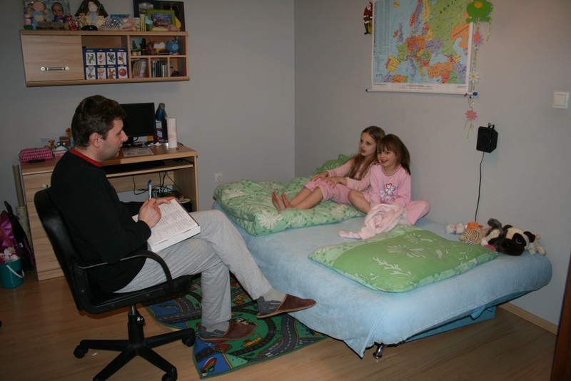 Stało się już naszą tradycją, że niemal codziennie przed snem dziewczynek, wspólnie poznajemy i czytamy Pismo Święte. Głównym prowadzącym jest Paweł, jako że posiada największą wiedzę z tej dziedziny. Mamy też inne książki dla dzieci, które uczą tego, co w życiu najważniejsze, czyli miłości do Boga i bliźnich, szacunku, łagodności, uprzejmości, uczciwości, prawdomówności i wielu innych dobrych cech, zachowań i przekonań. Wiele też wiedzy dziewczynki nabyły przez ten czas, szczególnie ze Starego Testamentu, o czym mogliśmy się przekonać podczas konkursu wiedzy biblijnej zorganizowanej przez Pawła. Dziewczyny nas bardzo zaskoczyły. Prezentujmy pytania konkursowe, bo to one pokazują najlepiej ile dziewczyny się nauczyły poprzez te nasze wspólne rozmowy. Na 20 przygotowanych pytań, każda z uczestniczek udzieliła po 19 poprawnych odpowiedzi!