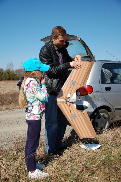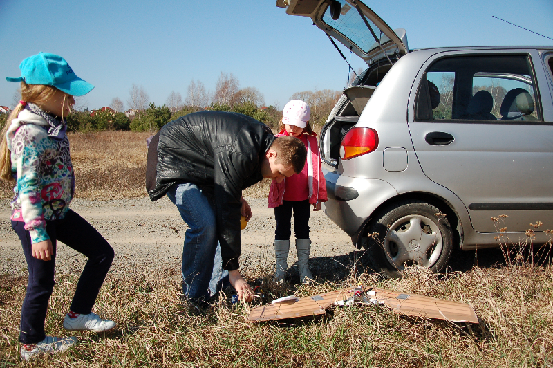 Dzisiaj pojechaliśmy nad pobliską łączkę gdzie Paweł pokazał nam swój zdalnie sterowany model latający. Styropianowe skrzydło pokryte zwykłą taśmą pakową. Mimo wietrznej pogody udało się wzbić w powietrze. Zapraszamy do obejrzenia zdjęć.