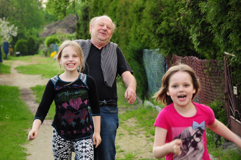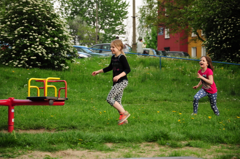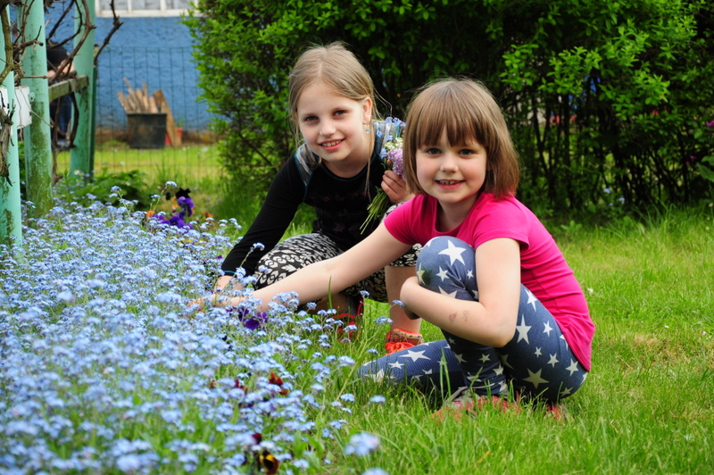 Tegoroczną majówkę spędziliśmy u Rodziców na Śląsku. Zaraz, pierwszego dnia po przyjeździe, poszliśmy na ogródek. Jak co roku Dziadek Olek posadził już wiele warzyw i rozsady naszych ulubionych kwiatów. Zresztą wiele z nich dostaliśmy do naszego ogródka. Dziewczyny porobiły pachnące bukiety z konwalii i bzu. Zrobiliśmy też krótki spacer do mojej dawnej Szkoły Podstawowej, gdzie dziewczynki miały okazję sprawdzić się (tak jak niegdyś mama) na bieżni i skoczni w dal. Odwiedziliśmy również Babcię i Prababcię (w jednej osobie :)) Irenkę, która w tym roku ukończyła 89 lat. Pomimo swojego sędziwego wieku jest nadal w dobrej kondycji i ugościła nas pysznościami. Spędziliśmy tam mile czas i zostaliśmy obdarowani przez Ciocię Mirkę kwiatami i roślinami do naszego ogródka. Spotkaliśmy się również (po długiej przerwie) z moją przyjaciółką Olą, a nasze dziewczyny w tym czasie „szalały” na sali zabaw. Wielką niespodziankę zrobiła nam też Mamusia, serwując pyszny tort z okazji nadchodzących Imienin. Niestety, jak zawsze, ten miły czas odwiedzin szybko minął i musieliśmy wracać do domu. Wyjeżdżając mamy zawsze taki smutek w sercu. Szkoda, że mieszkamy tak daleko od siebie.