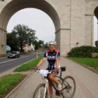Nasze wyniki nas ucieszyły. Przejechałam dystans 34km jako czwarta kobieta w czasie 1h46′. Po raz kolejny w tym roku stanęłam również na pierwszym stopniu podium w swojej kategorii wiekowej. Niestety w wyścigu uczestniczyło zaledwie kilkanaście Pań i przez całą drogę jechałam z mężczyznami, żadna kobieta mnie nie wyprzedziła, ani też ja żadnej nie dogoniłam. Już na samym początku trasy mieliśmy do pokonania wąski most i aby przez niego przejechać należało podejść schodami do góry. Ustawiła się kolejka, a zawodnicy z przodu już od początku mieli przewagę nad innymi. Pawłowi udało się przed mostem być z przodu, ja niestety asekuracyjnie zaczynając jazdę w tłumie, pozwoliłam na odjechanie czołówki kobiet i tak już ich nie dogoniłam.