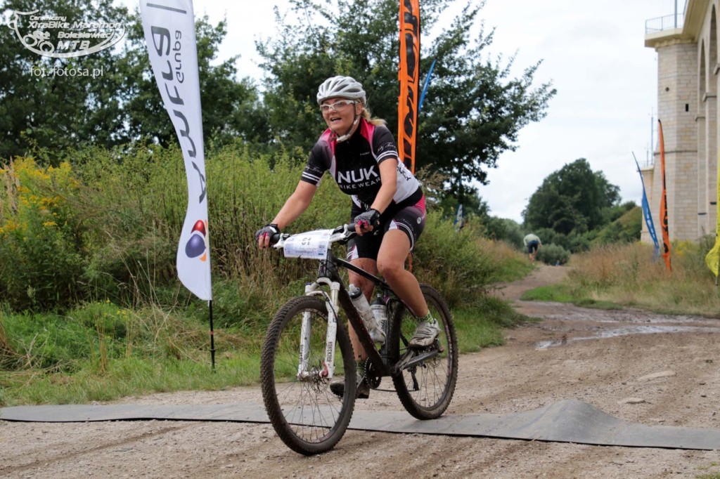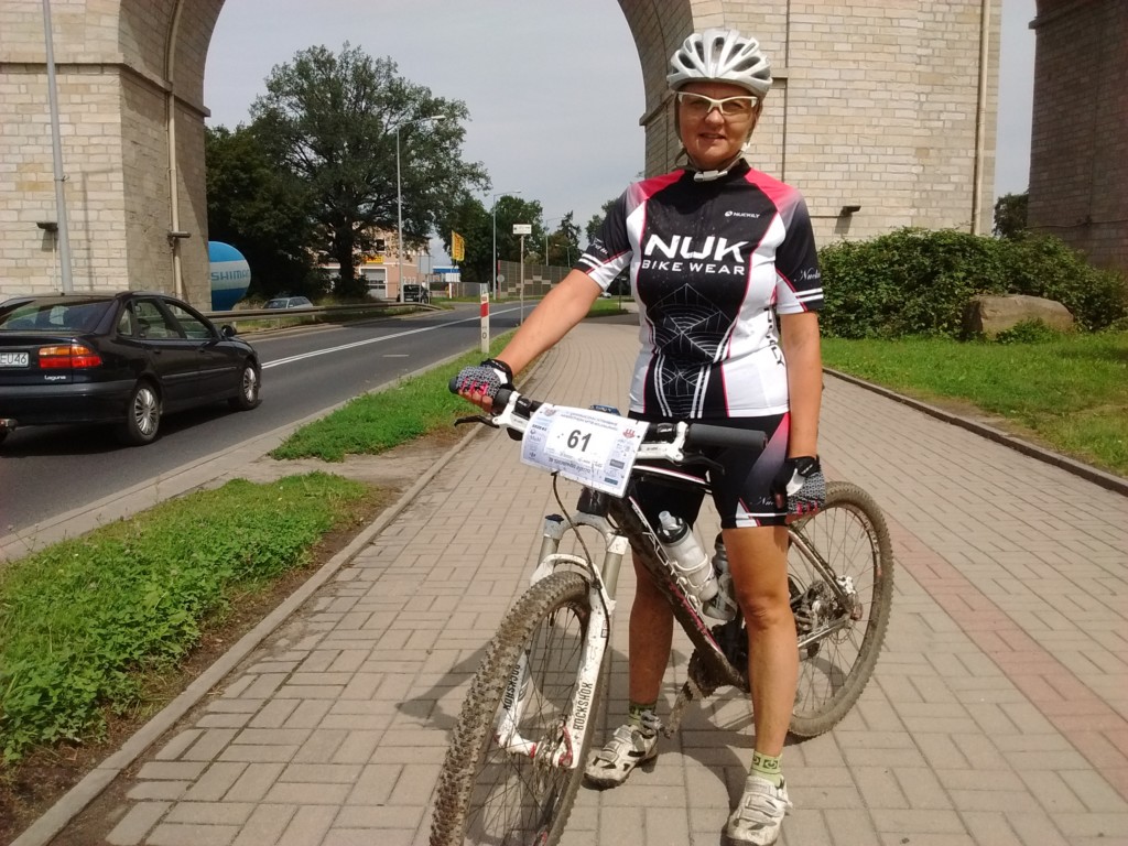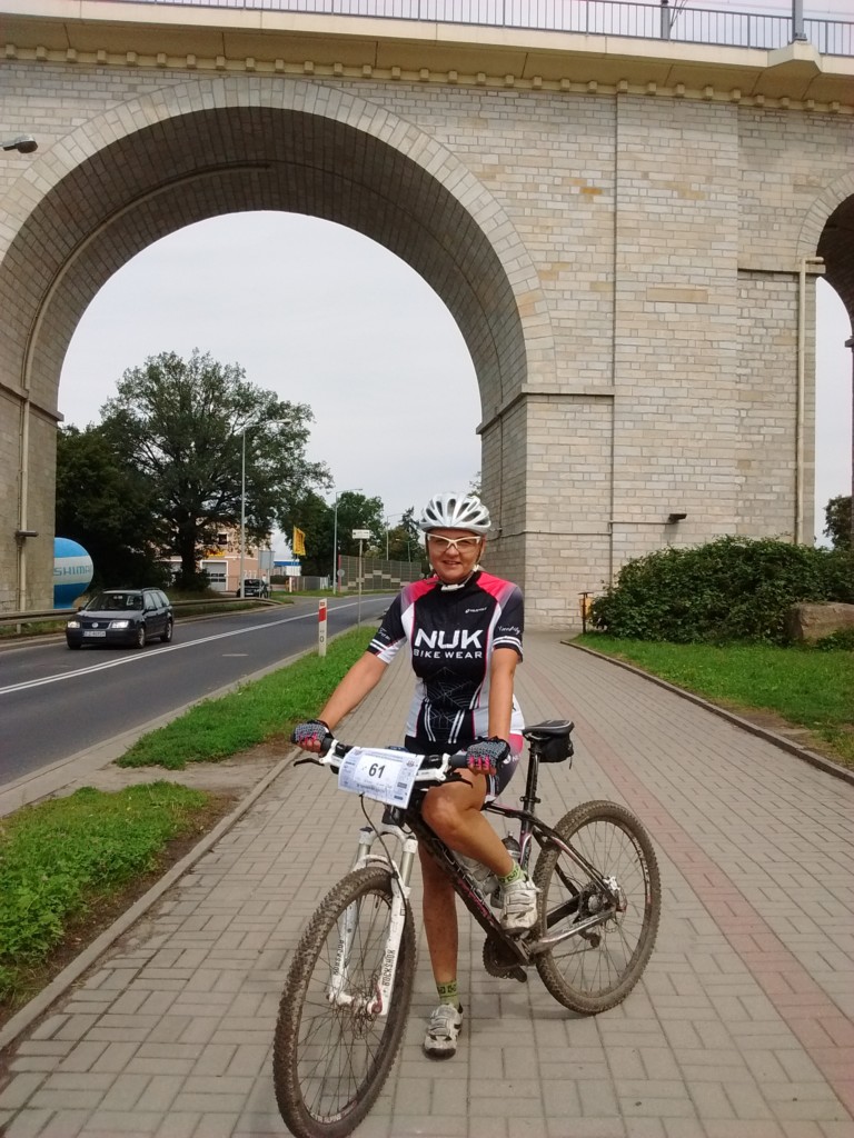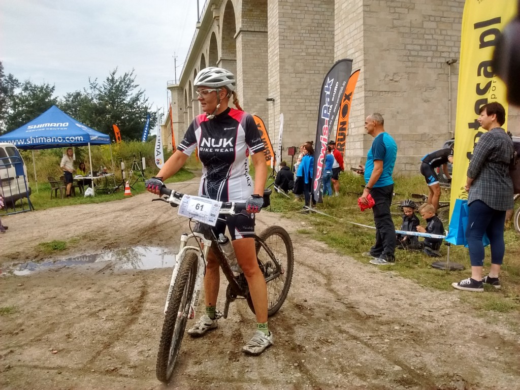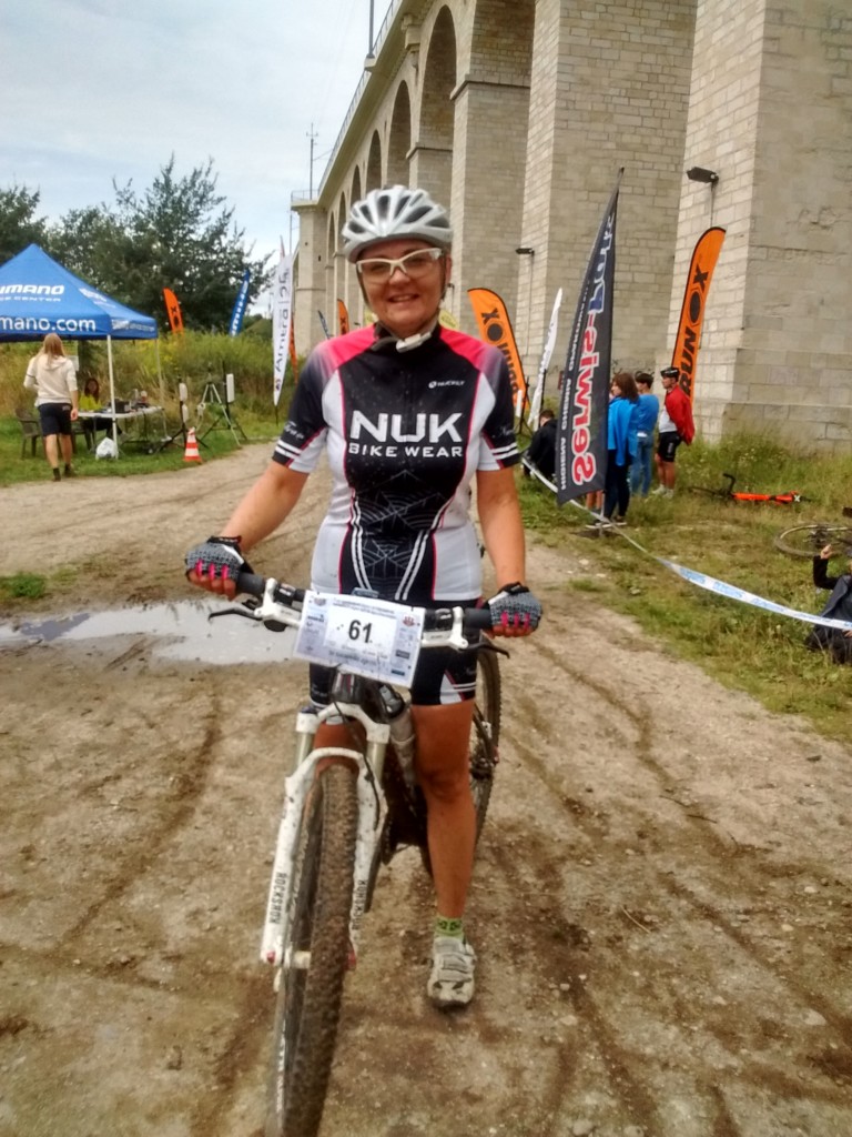 Nasze wyniki nas ucieszyły. Przejechałam dystans 34km jako czwarta kobieta w czasie 1h46′. Po raz kolejny w tym roku stanęłam również na pierwszym stopniu podium w swojej kategorii wiekowej. Niestety w wyścigu uczestniczyło zaledwie kilkanaście Pań i przez całą drogę jechałam z mężczyznami, żadna kobieta mnie nie wyprzedziła, ani też ja żadnej nie dogoniłam. Już na samym początku trasy mieliśmy do pokonania wąski most i aby przez niego przejechać należało podejść schodami do góry. Ustawiła się kolejka, a zawodnicy z przodu już od początku mieli przewagę nad innymi. Pawłowi udało się przed mostem być z przodu, ja niestety asekuracyjnie zaczynając jazdę w tłumie, pozwoliłam na odjechanie czołówki kobiet i tak już ich nie dogoniłam.