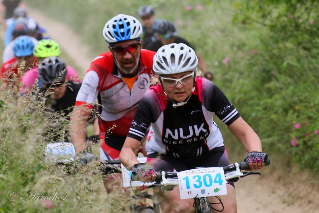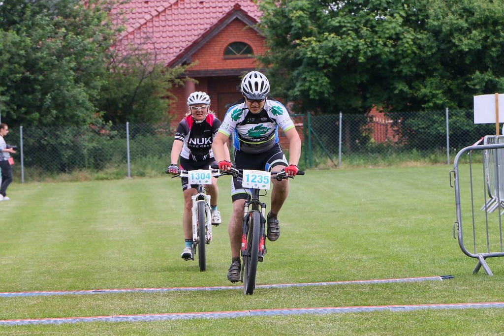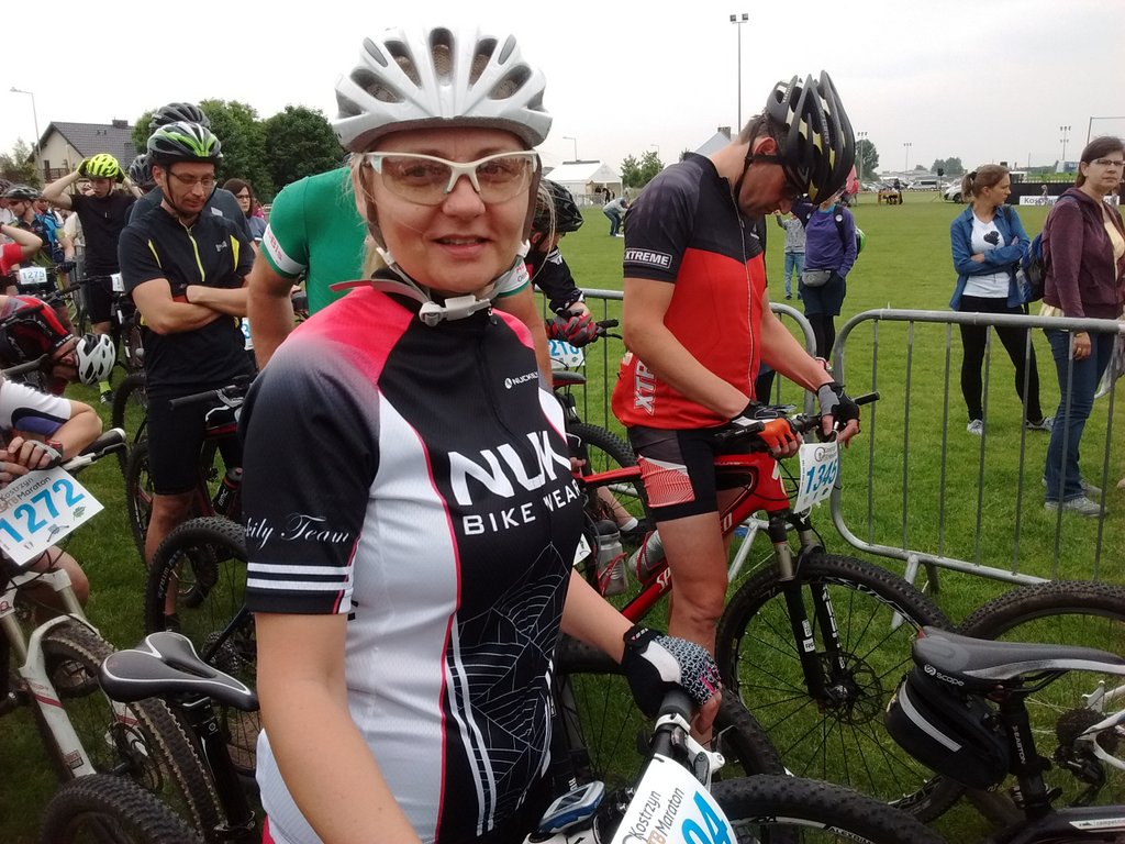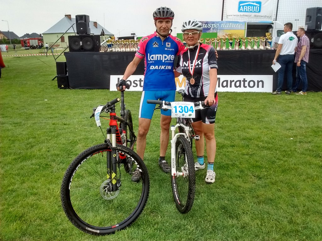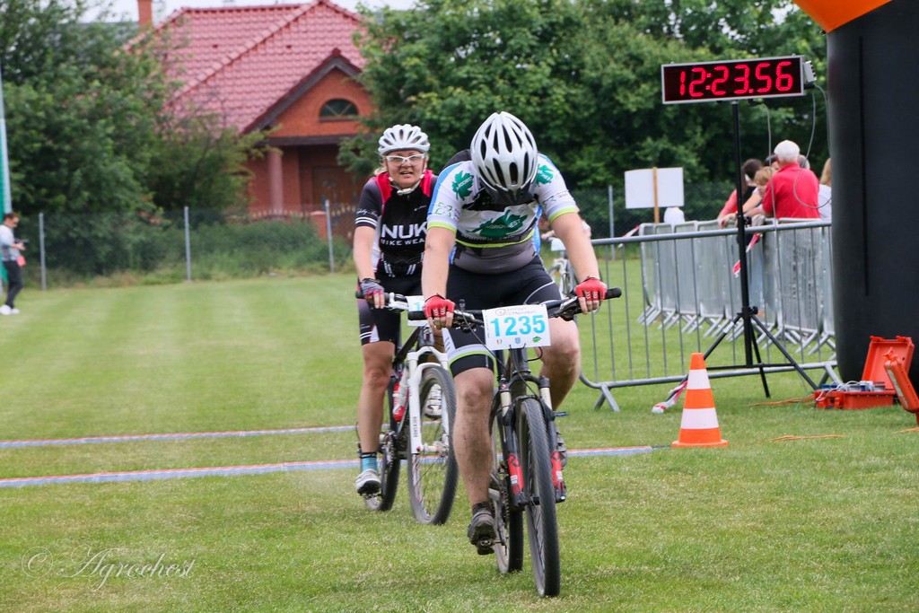 Startowaliśmy z 2 sektora, więc trudność była dodatkowa. Należało dogonić sektor pierwszy, który rozpoczął kilkanaście sekund przed nami, ale już na starcie miał przewagę. Potem było jeszcze trudniej, trzeba było utrzymać tempo lepszych. Ostatecznie udało się przyjechać na 7 miejscu z czasem wspólnym 2:16:30. Pawełek przyjechał z czasem 1:02:34 jako 31 mężczyzna, a w swojej kategorii wiekowej zabrakło 3 sekundy do 6 miejsca i dekoracji na szerokim podium. Ja przyjechałam z czasem 1:13:56 jako 9 kobieta i byłam 4 w swojej kategorii wiekowej. Nasze czasy okazały się wspaniałe. Jak sami organizatorzy potwierdzają poziom zawodów w tym roku bardzo podniósł się i nasze wyniki rok, czy dwa lata temu spokojnie dawałyby nam miejsce na podium, ale w tym roku było dużo trudniej. Zresztą to chyba nasza ogromna chęć tworzenia razem rzeczy wyjątkowych i robienia przyjemności dla siebie spowodowała, że jechaliśmy jak uskrzydleni.