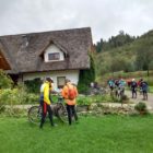 Nasza pierwsza 72km wyprawa zaczęła się od wizyty w Zagrodzie Żubrów. Potem drogami szutrowymi, leśnymi dotarliśmy do Widełek, a następnie do Pszczelin, Dwerniczek, aż do „Wilczej Jamy” – tak chyba nazywała się ta niezwykła restauracja. Przejechaliśmy Procisne i wróciliśmy z powrotem do Mucznego. Asystował nam na czele głośny quad, aby odstraszać dziką zwierzynę, a szczególnie niedźwiedzie.