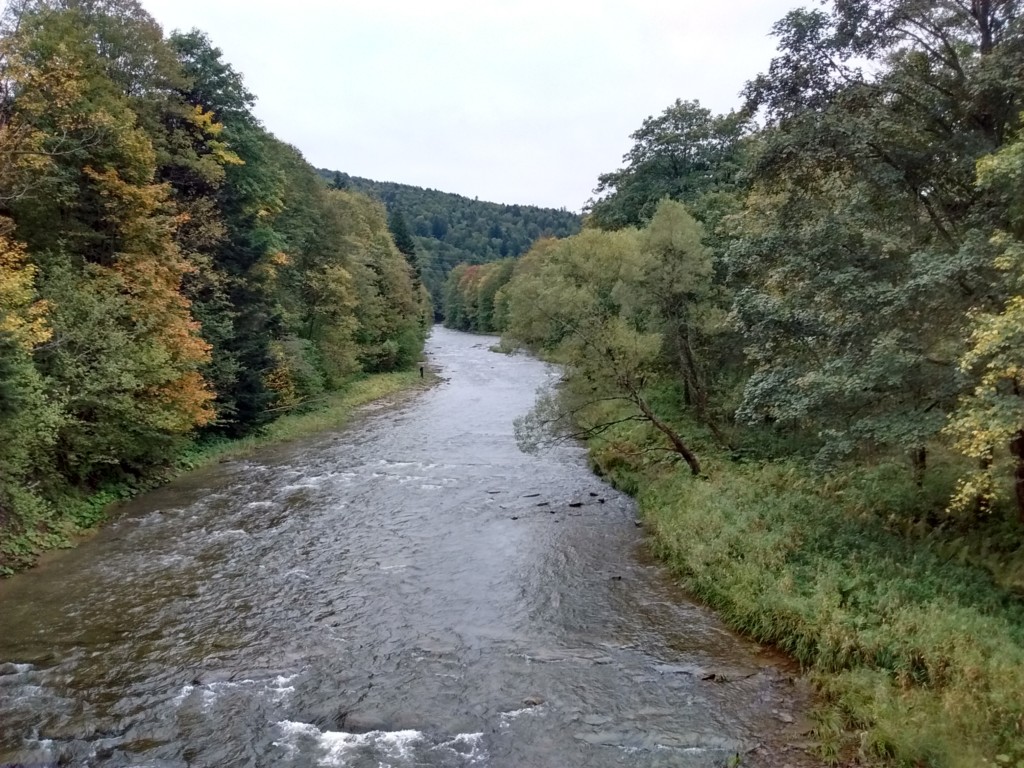 Nasza pierwsza 72km wyprawa zaczęła się od wizyty w Zagrodzie Żubrów. Potem drogami szutrowymi, leśnymi dotarliśmy do Widełek, a następnie do Pszczelin, Dwerniczek, aż do „Wilczej Jamy” – tak chyba nazywała się ta niezwykła restauracja. Przejechaliśmy Procisne i wróciliśmy z powrotem do Mucznego. Asystował nam na czele głośny quad, aby odstraszać dziką zwierzynę, a szczególnie niedźwiedzie.