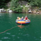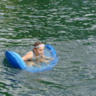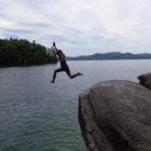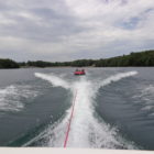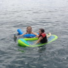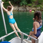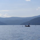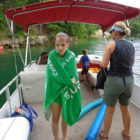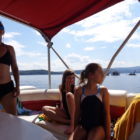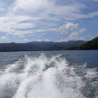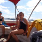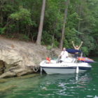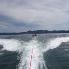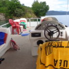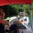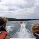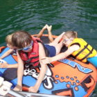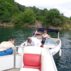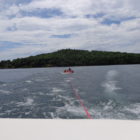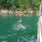 Następnego dnia obudziło nas słońce. Zapowiadał się wspaniały dzień. jezioro było do naszej dyspozycji,. Mieliśmy dwie łódki motorowe i nimi przemieszaliśmy się do kolejnych wodospadów. przy wodospadach był czas na pływanie, materac, czy bodyboard. Była też specjalna atrakcja- jazda za łódką na okrągłym materacu. Ile było przy tym zabawy i emocji ! Niektórzy z materaca nawet pospadali, a wtedy to i widzowie na łódce mieli frajdę, a największą z nich miał kapitan, który robił wszystko, żeby było trudno utrzymać się na materacu ;-)