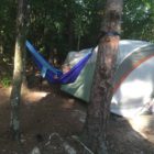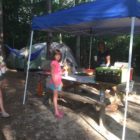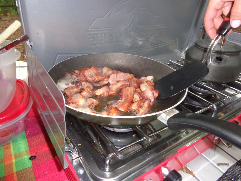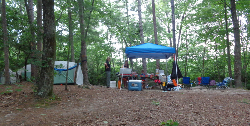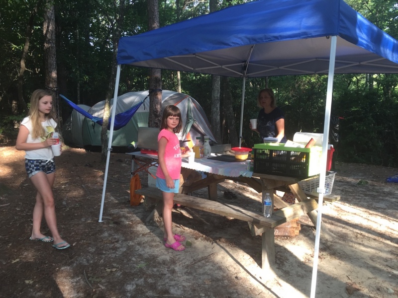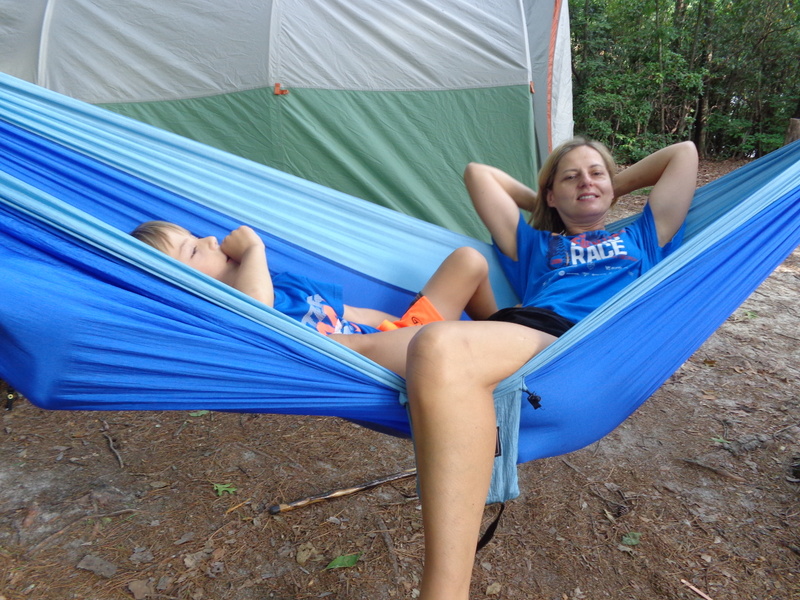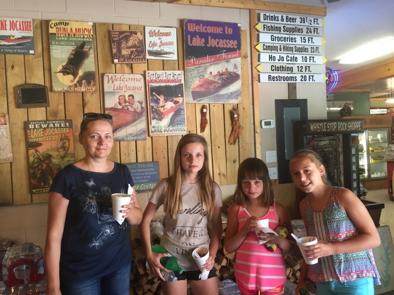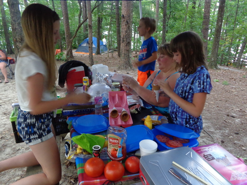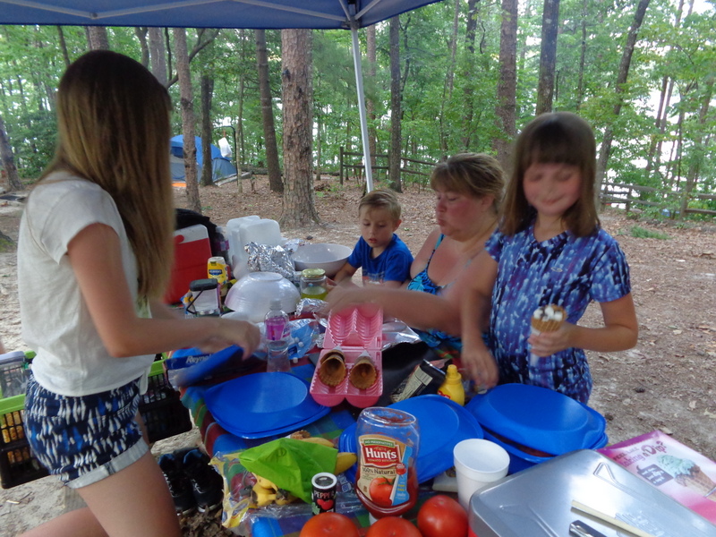 Naszą wyprawę na camping rozpoczynamy wielkim pakowaniem. W dwóch samochodach mieścimy dosłownie cały dom. Jest namiot sześcioosobowy, każdy ma swój materac i śpiwór, do tego kuchnia: gazowa, dwie duże lodówki, stolik, namiot i dużo jedzenia. W okolicach nie ma żadnego sklepu. W samochodzie mieszczą się też dwie hulajnogi, materace i inne akcesoria do pływania. W końcu ruszamy przedzierając się przez zatłoczoną autostradę. Docieramy do Jeziora Jaccosse już popołudniu. Jest upalnie, wilgotno i absolutna cisza. Camping mamy na dosłownie na cyplu jeziora. Rozkładanie obozowiska zajmuje nam dwie godziny. Upał i do tego zimny napój okazuje się, że akurat dla mnie nie jest dobrym pomysłem. Następnego dnia czuję piekące gardło i tak w konsekwencji cały wyjazd leczę chore gardło. Podczas gdy wspólnie z Anią stawiamy namiot, dzieci z Dawidem chłodzą się w jeziorze. Wieczorem nad jeziorem dołączamy do wszystkich. Są z nami Ciocia Triscia, kuzyn Joseh z żoną Dallas, przyjaciel Berto i kuzyn Nate. Tego dnia burza wisiała w powietrzu. otoczeni lasem nie widzieliśmy jak naciągnęły ciemne chmury. Nagle zerwał się wiatr i drzewa zaczęły uginać się niebezpiecznie, małe gałęzie zaczęły spadać koło nas. Grzmiało dosłownie nad nami. Schroniliśmy się w murowanym pomieszczeniu, dzieci były przerażone. Burza jednak szybko przeszła, a po nie zostało przyjemne, orzeźwiające powietrze. Kolację zjedliśmy z prawdziwą ochotą, choć w pośpiechu ponieważ nadal kropiło.