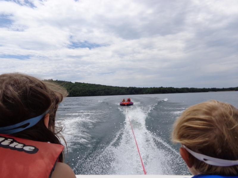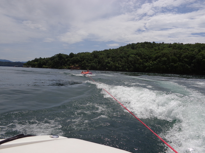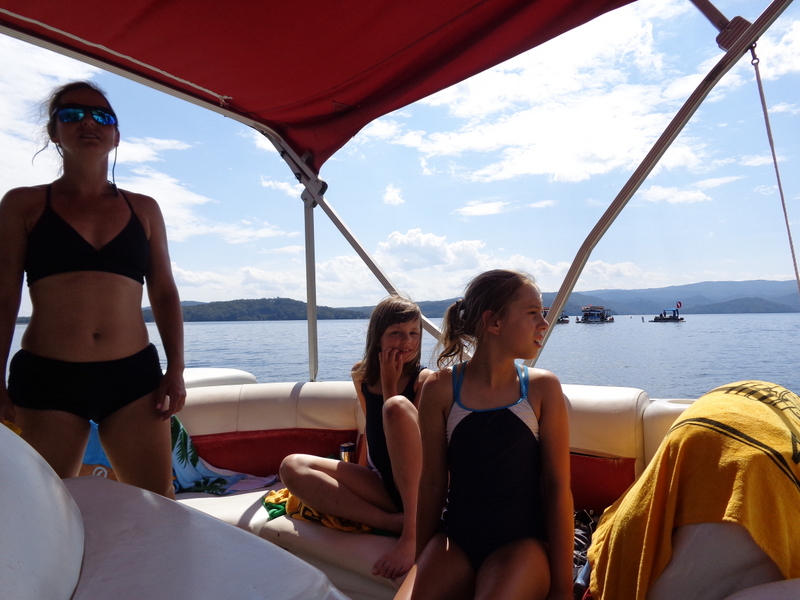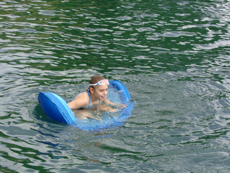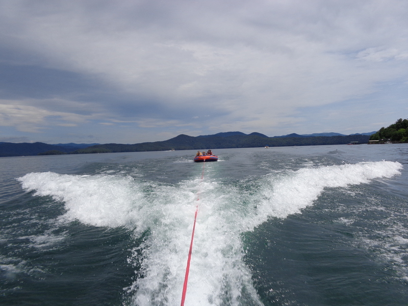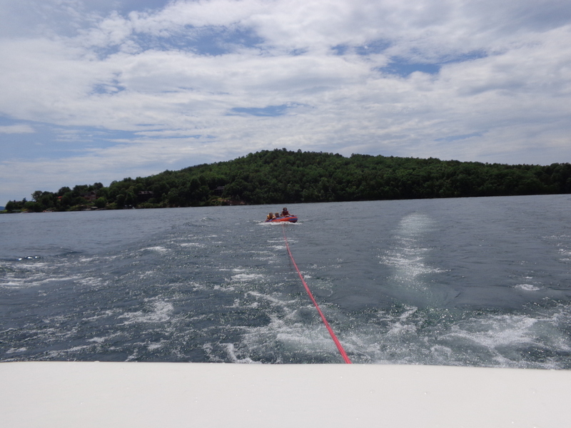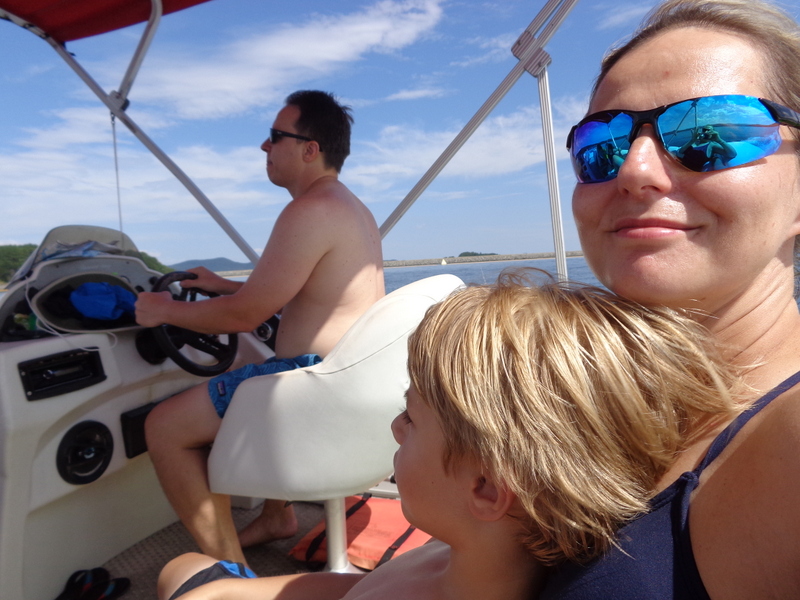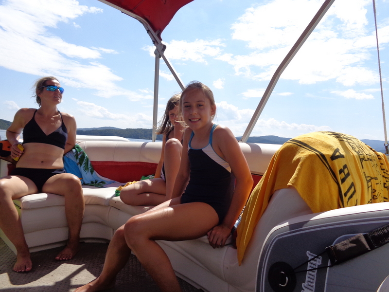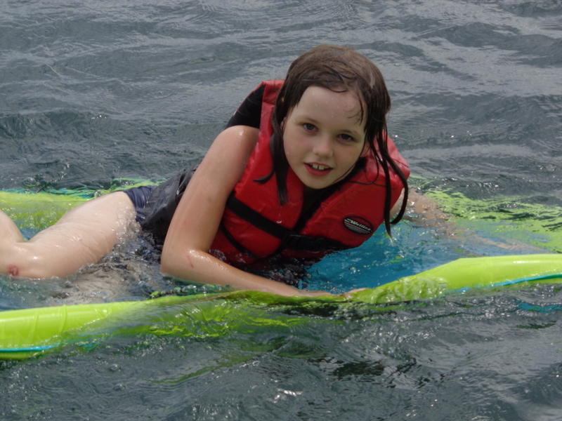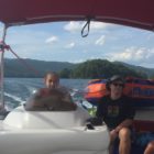 Następnego dnia obudziło nas słońce. Zapowiadał się wspaniały dzień. jezioro było do naszej dyspozycji,. Mieliśmy dwie łódki motorowe i nimi przemieszaliśmy się do kolejnych wodospadów. przy wodospadach był czas na pływanie, materac, czy bodyboard. Była też specjalna atrakcja- jazda za łódką na okrągłym materacu. Ile było przy tym zabawy i emocji ! Niektórzy z materaca nawet pospadali, a wtedy to i widzowie na łódce mieli frajdę, a największą z nich miał kapitan, który robił wszystko, żeby było trudno utrzymać się na materacu ;-)