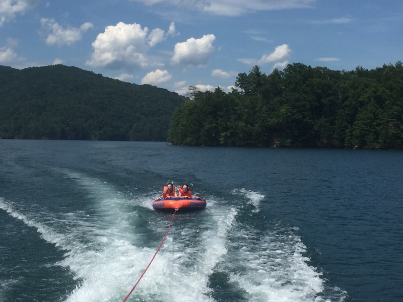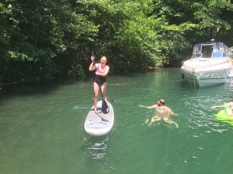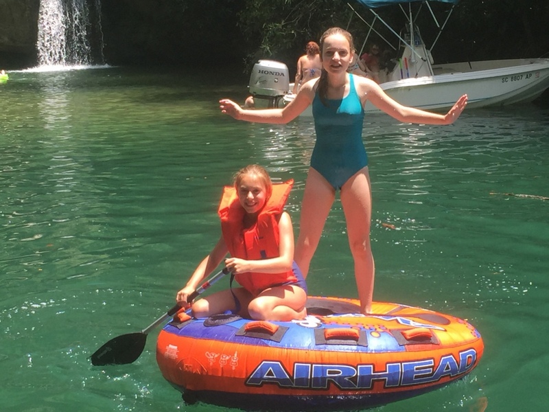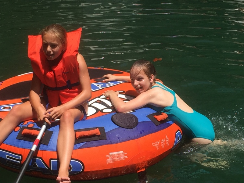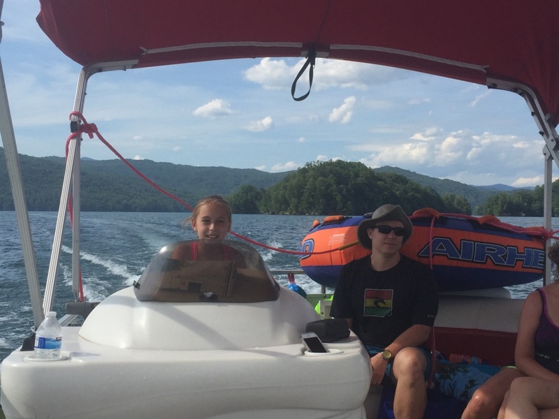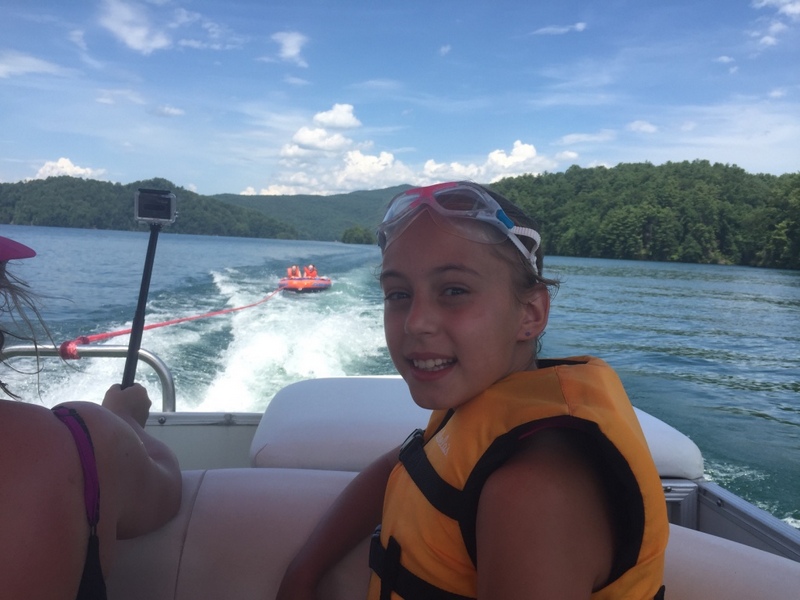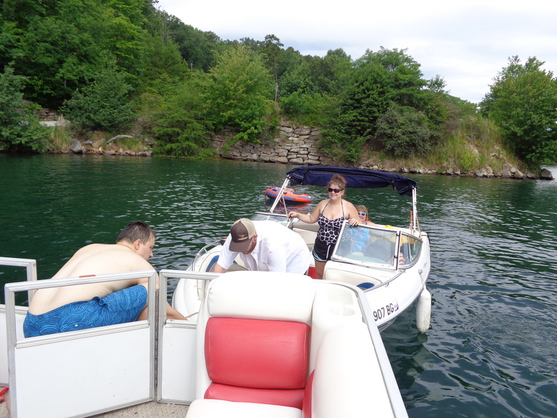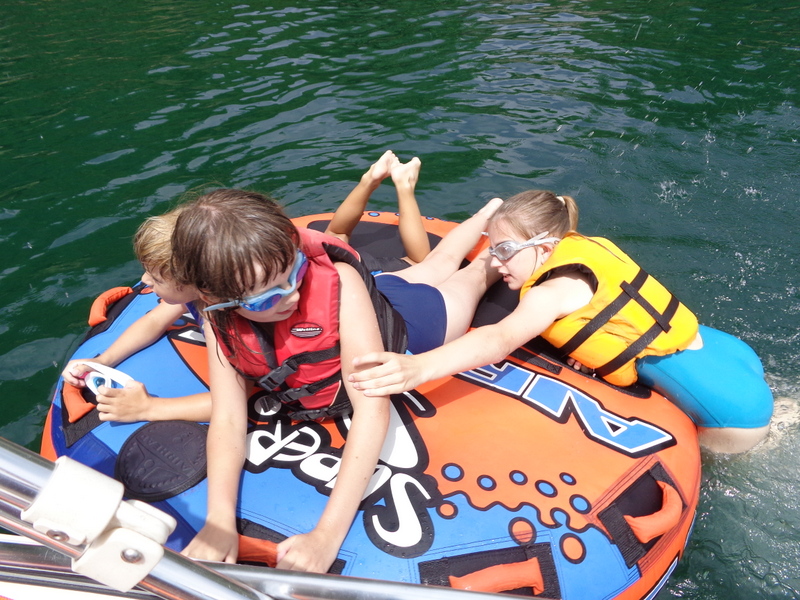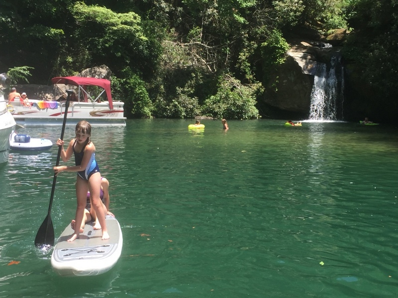 Następnego dnia obudziło nas słońce. Zapowiadał się wspaniały dzień. jezioro było do naszej dyspozycji,. Mieliśmy dwie łódki motorowe i nimi przemieszaliśmy się do kolejnych wodospadów. przy wodospadach był czas na pływanie, materac, czy bodyboard. Była też specjalna atrakcja- jazda za łódką na okrągłym materacu. Ile było przy tym zabawy i emocji ! Niektórzy z materaca nawet pospadali, a wtedy to i widzowie na łódce mieli frajdę, a największą z nich miał kapitan, który robił wszystko, żeby było trudno utrzymać się na materacu ;-)