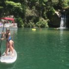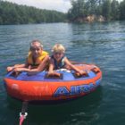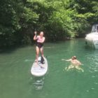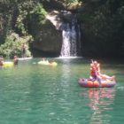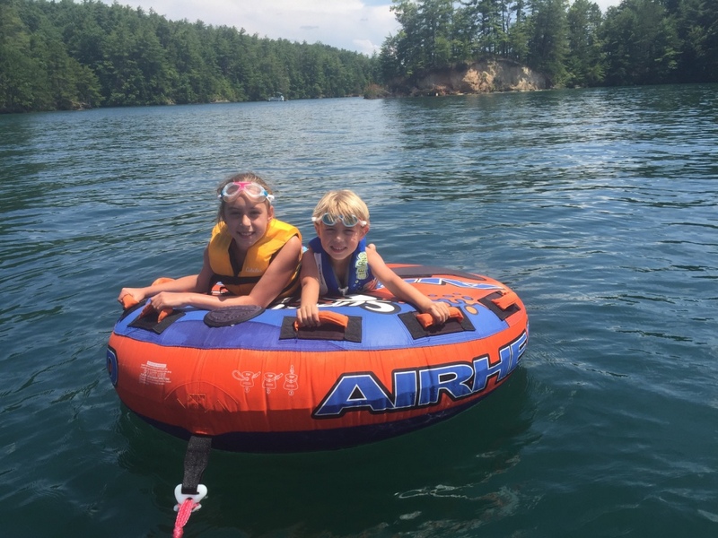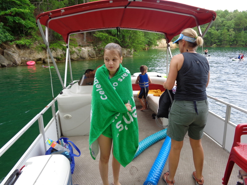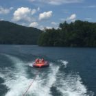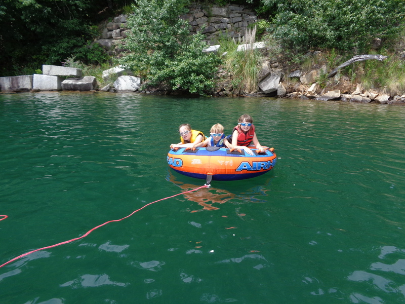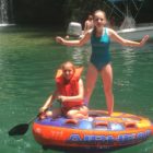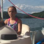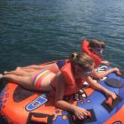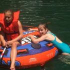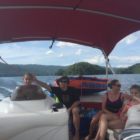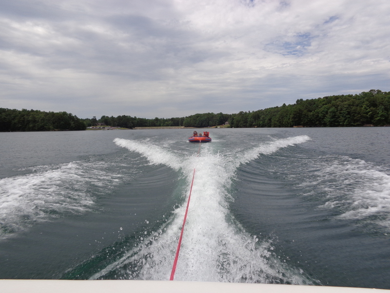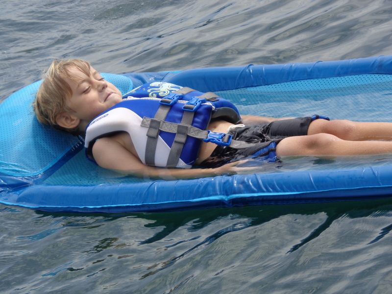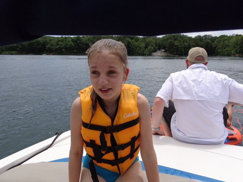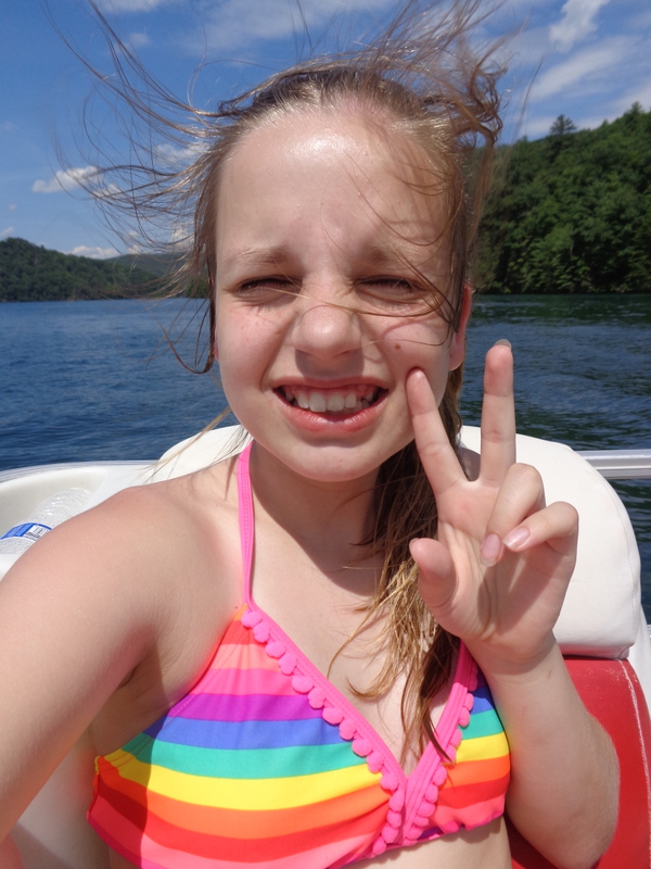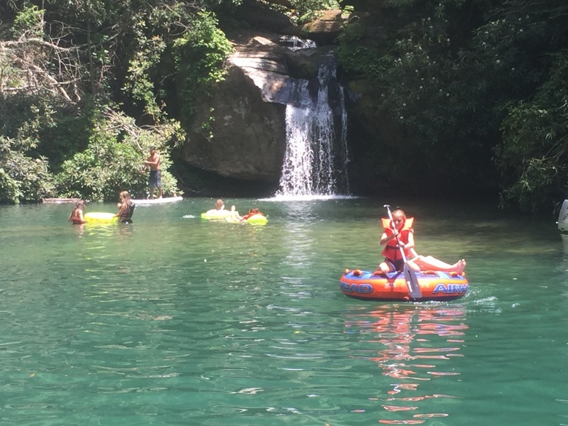 Następnego dnia obudziło nas słońce. Zapowiadał się wspaniały dzień. jezioro było do naszej dyspozycji,. Mieliśmy dwie łódki motorowe i nimi przemieszaliśmy się do kolejnych wodospadów. przy wodospadach był czas na pływanie, materac, czy bodyboard. Była też specjalna atrakcja- jazda za łódką na okrągłym materacu. Ile było przy tym zabawy i emocji ! Niektórzy z materaca nawet pospadali, a wtedy to i widzowie na łódce mieli frajdę, a największą z nich miał kapitan, który robił wszystko, żeby było trudno utrzymać się na materacu ;-)