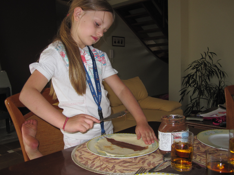 Dziewczynki dzisiaj jednogłośnie stwierdziły, że są to najlepsze naleśniki, jakie kiedykolwiek jadły, a Pan Paweł jest mistrzem w robieniu naleśników. Marlenka zaproponowała uwiecznienie naleśników na zdjęciach :) Wkrótce autorski przepis Pawła na naleśniki zostanie umieszczony na naszej stronce:). Podobno zawsze wychodzą ;)