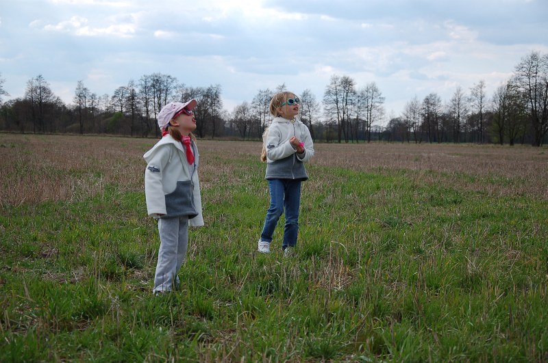 Dzisiaj po obiedzie pojechaliśmy nad rzekę Odrę aby pospacerować po okolicznych terenach. Pogoda była latawcowa więc nie mogło zabraknąć tego elementu. Dziewczynki miały wielką frajdę. Widzieliśmy też żurawie dumnie spacerujące po polu oraz zające. Jednego udało się nawet Monice sfotografować (zaznaczony na zdjęciu strzałką). Wróciliśmy uradowani :) i dotlenieni. Zapraszamy do obejrzenia zdjęć.