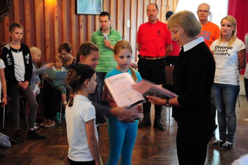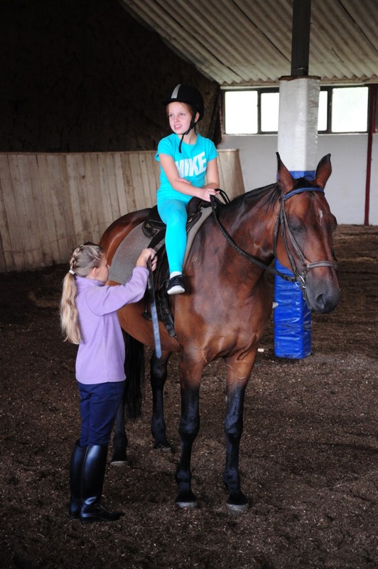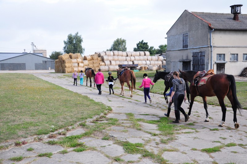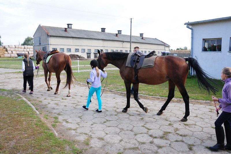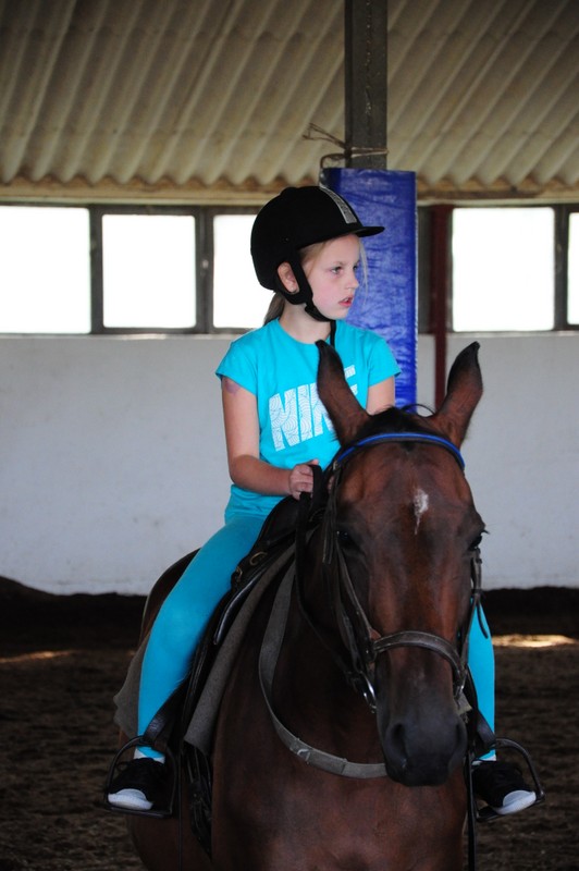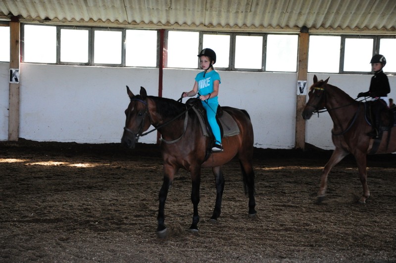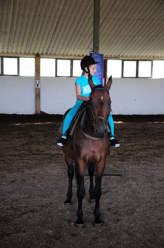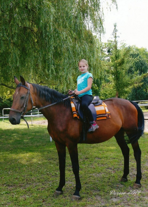 „Moim ulubionym zwierzęciem jest koń, który ma na imię Kilimandżaro. Poznałam Kili na obozie jeździeckim w Dereszu, gdzie uczyłam się na niej kłusować. Kili ma w kłębie około 165cm i jest jednym z najwyższych koni w w stadninie. Jej maść jest gniada, a jej charakterystycznym znakiem jest niewielka gwiazdka na czole. Kili ma spokojny charakter. Była mi bardzo posłuszna. Tęsknię za Kilimandżaro.” – tak oto Marlenka opisała w zadaniu domowym z języka polskiego swoje ulubione zwierzątko. Marlenka uczestniczyła w obozie jeździeckim w stadnie Deresz pod Bydgoszczą, gdzie uczyła się opieki nad koniem i poznała pierwsze chody konia. Nauczyła się całkiem sprytnie anglezowania podczas kłusu, co mogliśmy zobaczyć na pokazie zorganizowanym w ostatnim dniu kursu. Marlenka świetnie sobie radziła. Widać jest opanowana i spokojna, co na pewno przekłada się na spokojne i bezpieczne zachowanie konia. Byliśmy dumni z naszej Marlenki, a szczególnie ja, widząc jak dużo radości jej przynosi jazda konna. Chyba ma to po Mamusi. :)