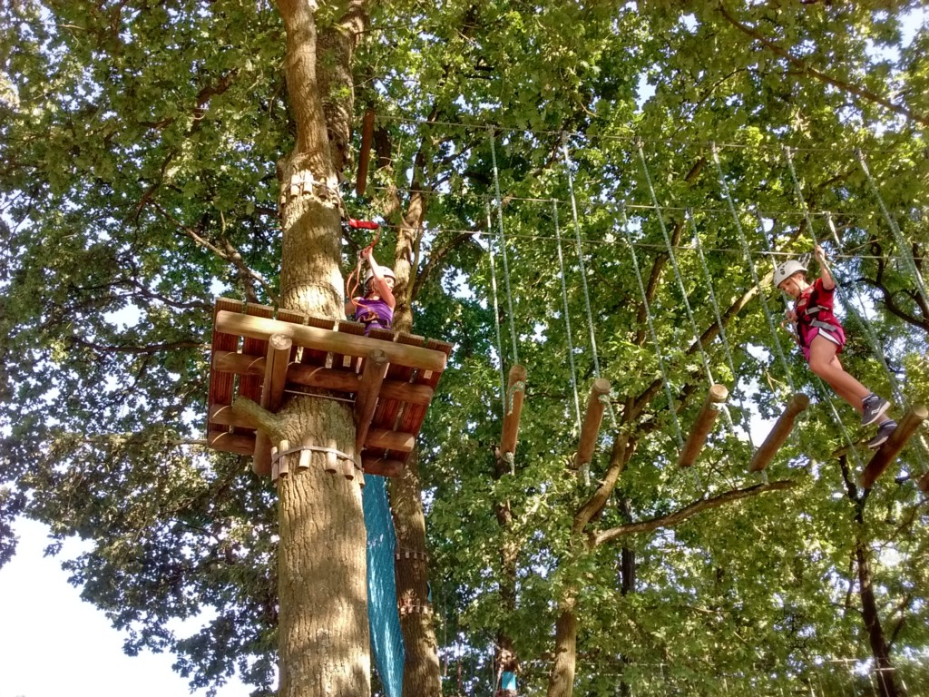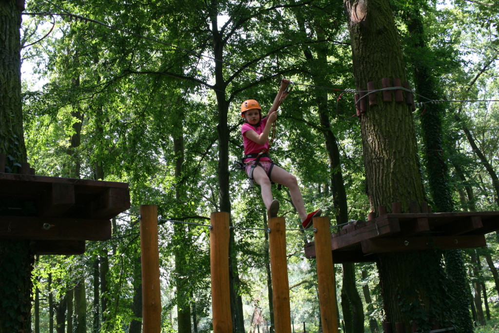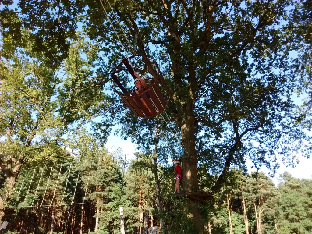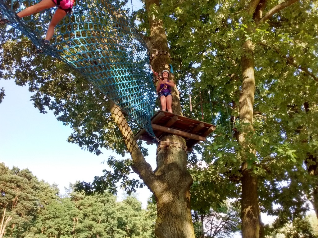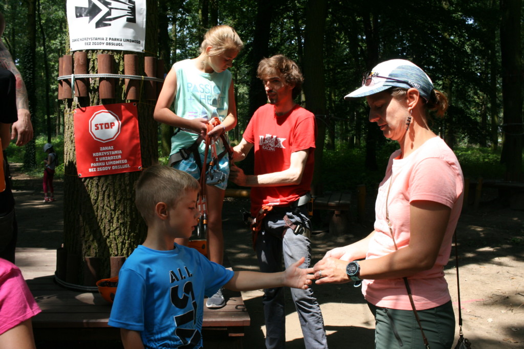 Podczas tegorocznej wizyty cioci Ani i wujka Dawida z Zosią i Łukaszkiem w wakacje pojechaliśmy do nowo otwartego Parku Linowego w Nowej Soli. To część parku Krasnala -wielkiego placu zabaw dla dzieci. Atrakcja się podobała, bo dla każdego było coś ciekawego. Po krótkim przeszkoleniu w języku angielskim !, wszyscy wyruszyli na trasy o rożnym stopniu trudności dostosowanym do umiejętności, a przede wszystkim wzrostu. Ciocia Ania i Monika też spróbowały swoich sił w parku i udało się dokończyć trasę.