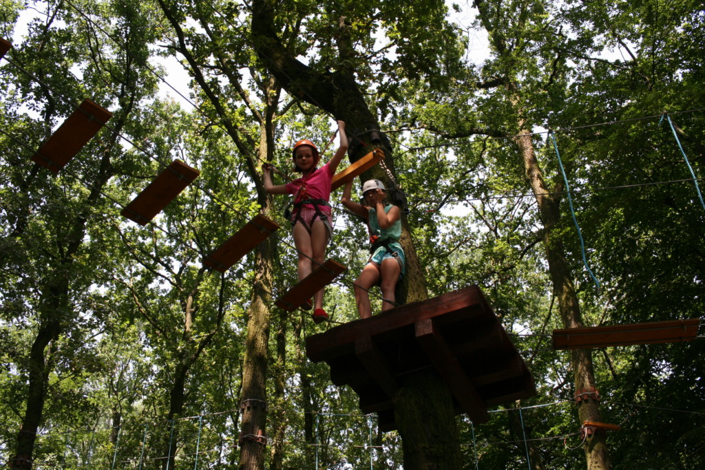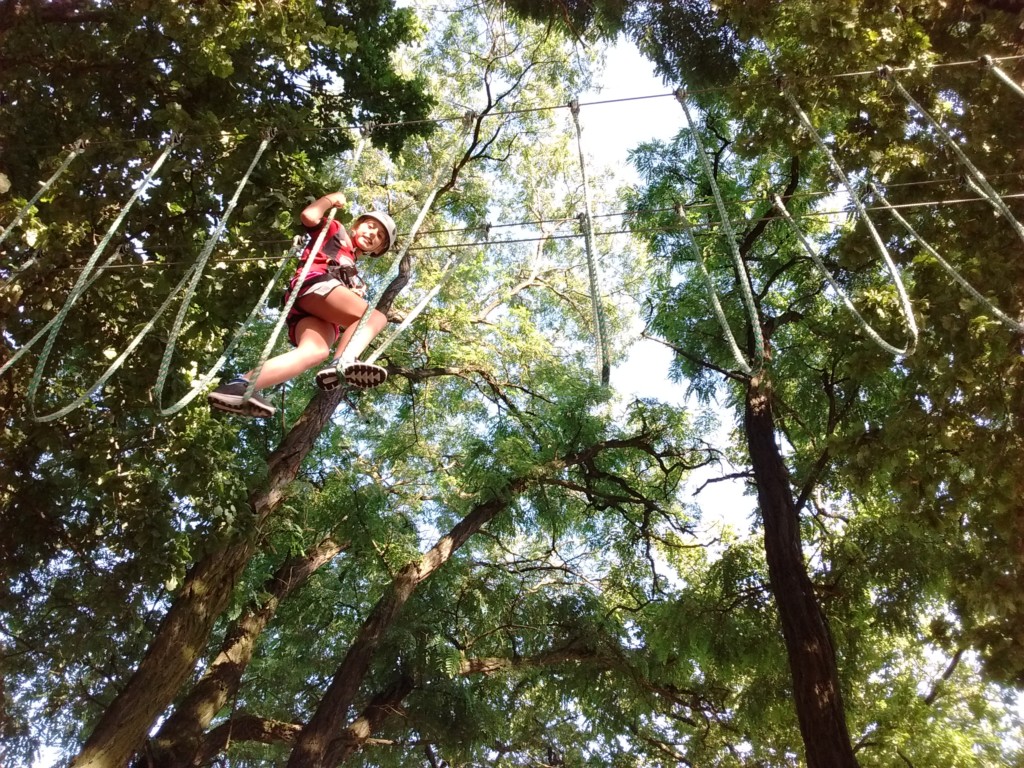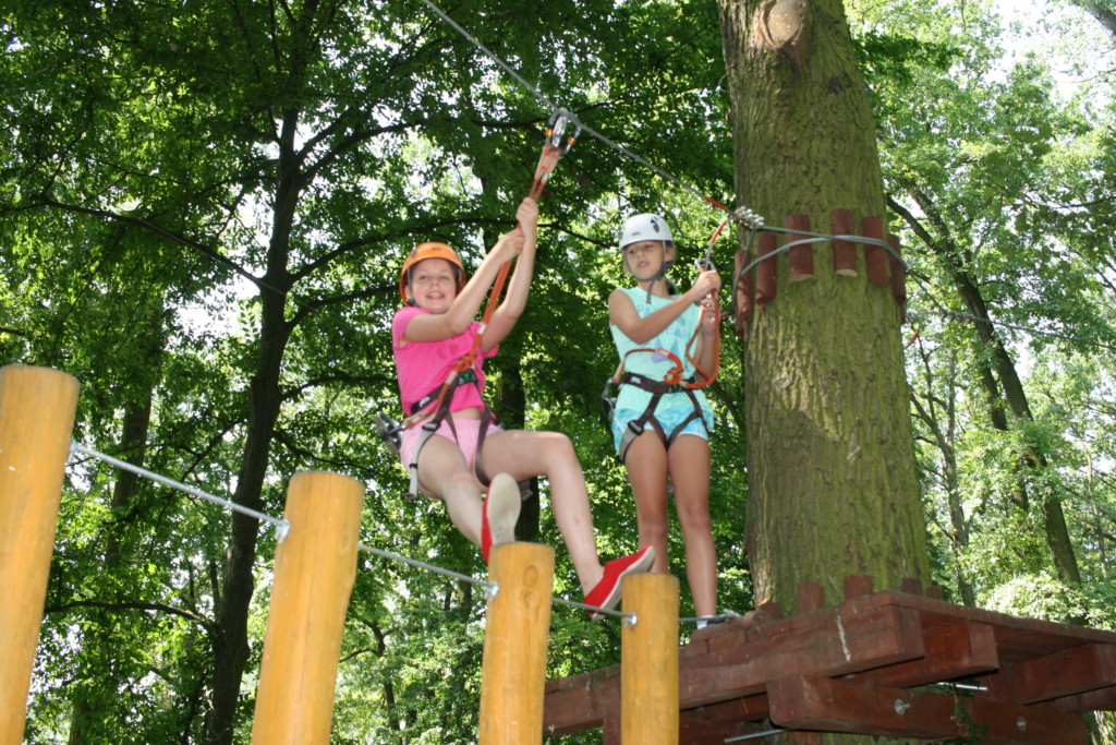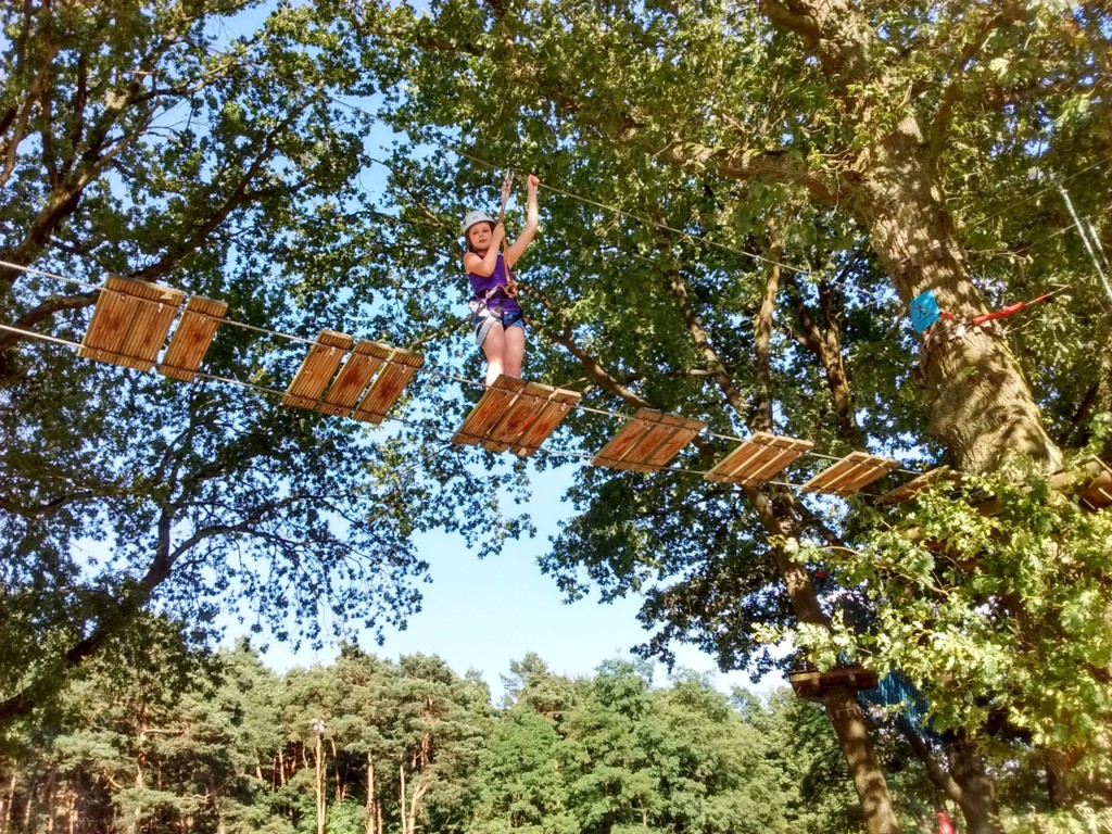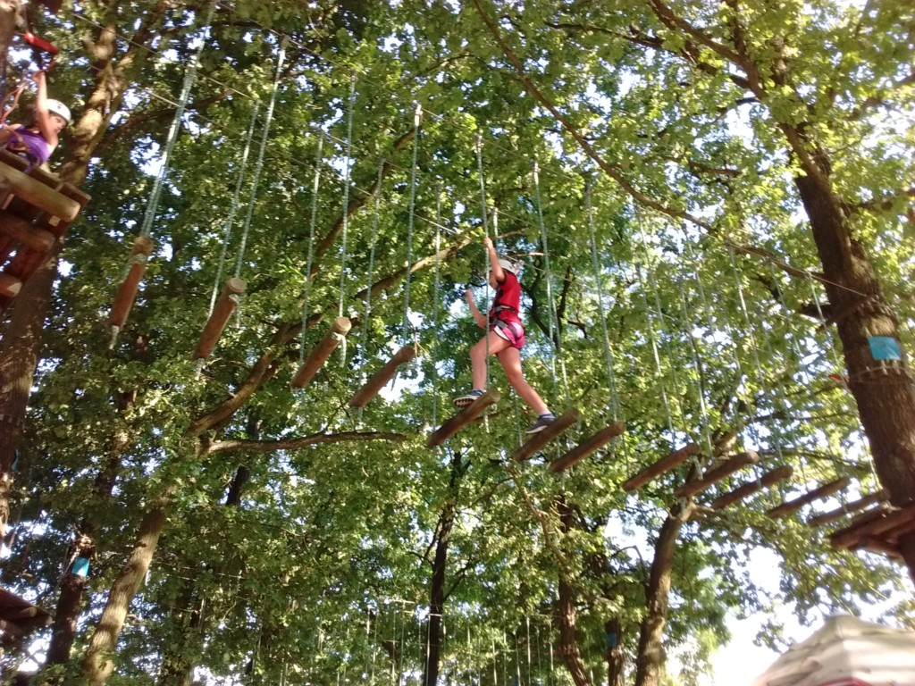 Podczas tegorocznej wizyty cioci Ani i wujka Dawida z Zosią i Łukaszkiem w wakacje pojechaliśmy do nowo otwartego Parku Linowego w Nowej Soli. To część parku Krasnala -wielkiego placu zabaw dla dzieci. Atrakcja się podobała, bo dla każdego było coś ciekawego. Po krótkim przeszkoleniu w języku angielskim !, wszyscy wyruszyli na trasy o rożnym stopniu trudności dostosowanym do umiejętności, a przede wszystkim wzrostu. Ciocia Ania i Monika też spróbowały swoich sił w parku i udało się dokończyć trasę.