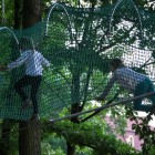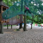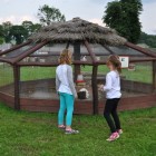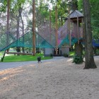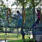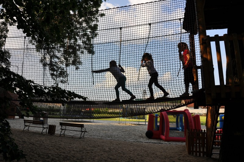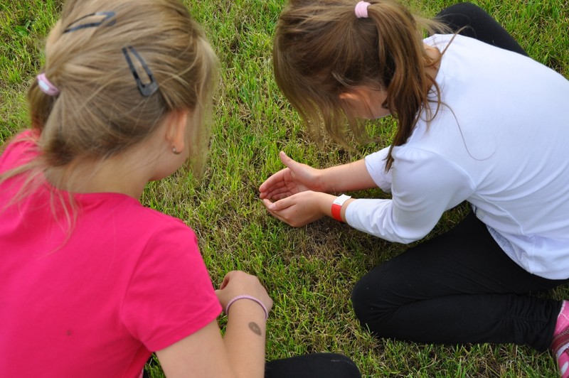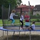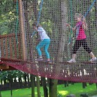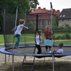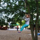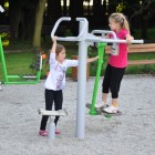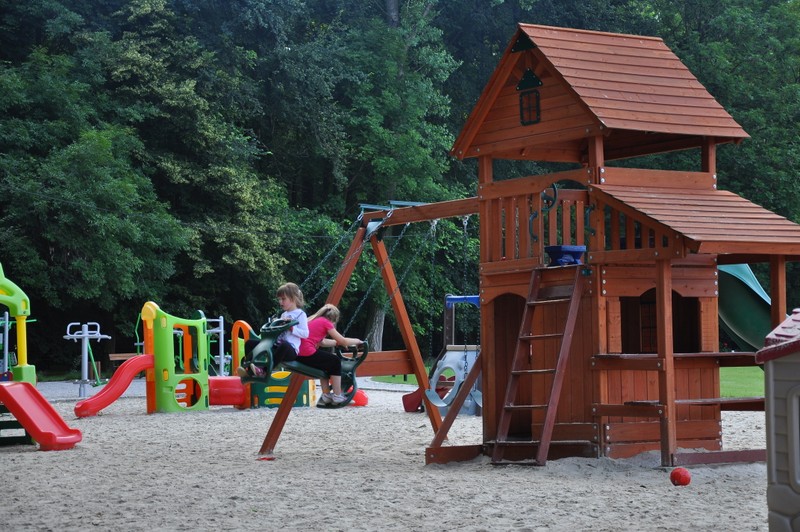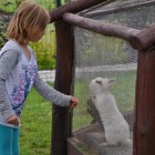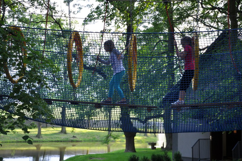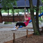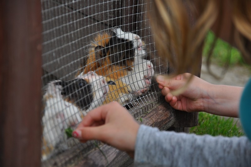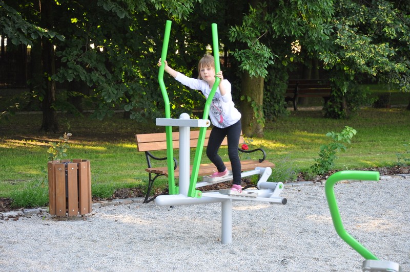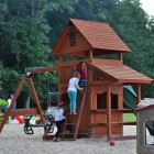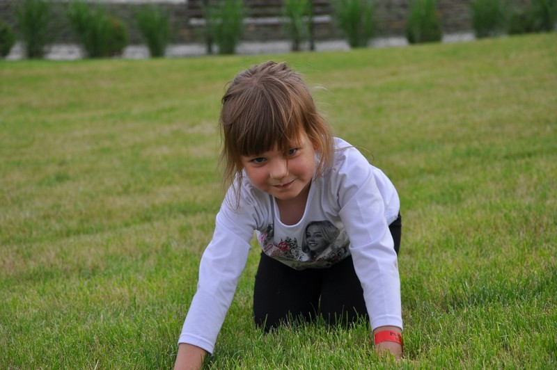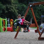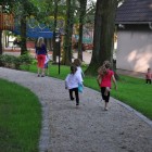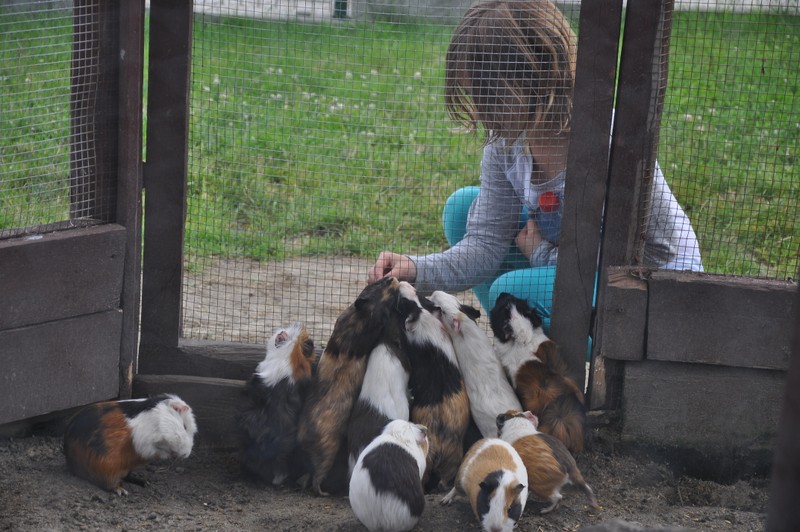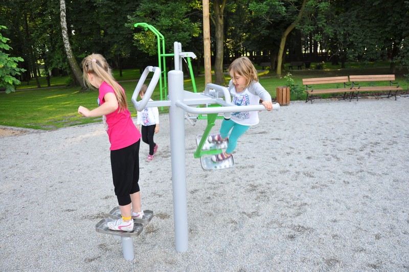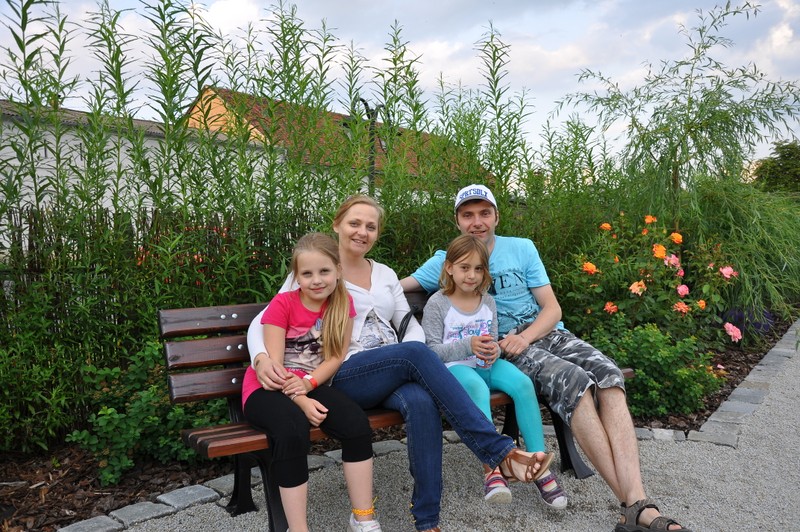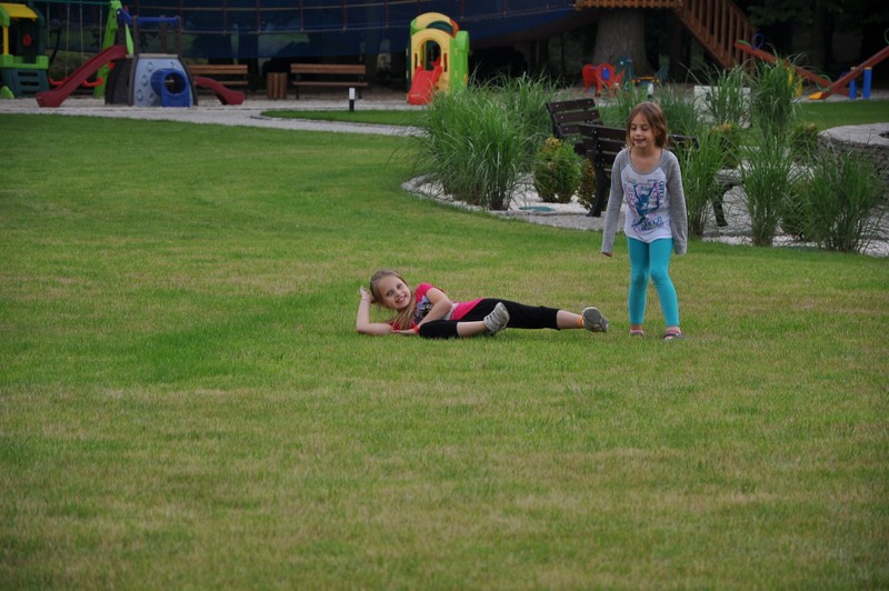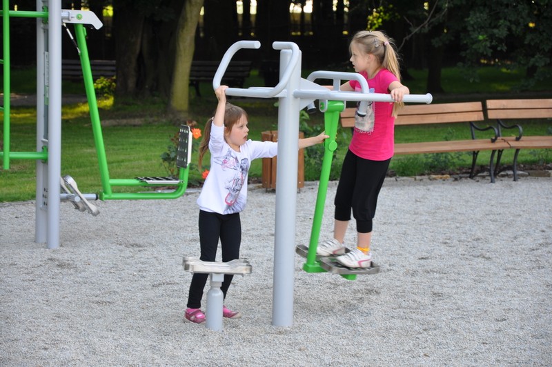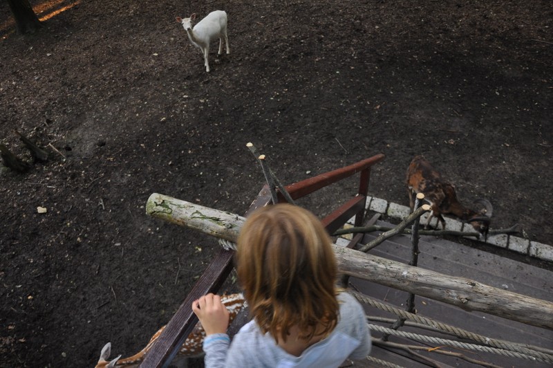 Niedaleko Tarnowskich Gór, w Zbrosławicach, znajduje się fantastyczne miejsce do zabawy dla dzieci. Tam też wybraliśmy się podczas krótkiej wizyty u rodziców razem z kuzynką Zosią. W sympatycznym miejscu wśród drzew został utworzony park linowy dostępny dla dzieci już od wieku przedszkolnego. Dziewczyny dosłownie „śmigały” na rozwieszonych kładkach, podtrzymując się linek. Patrzyliśmy na nie z dumą, że są takie odważne i sprawne.  Karmiliśmy też zwierzęta leśne: sarny, jelenie oraz króliczki, świnki, ptaszki w „małym zwierzyńcu” oraz w zamkniętym leśnym „mini rezerwacie”.  Dziewczyny często też tam miały okazję się bawić na sali zabaw, podczas deszczowych dni na tegorocznych wakacjach u dziadków. Wówczas na salę już jeździła z nimi babcia Marylka i dziadek Olek.