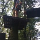 Parki linowy w Nowej Soli to idealne miejsce dla naszych odważnych, zwinnych dziewczyn, które najwidoczniej nie mają lęku przestrzeni i wspinaczka na wysokościach jest dla nich wielką atrakcją. Dzisiaj Zosia z Julią razem pokonywały przeszkody, a Marlenka już samodzielnie na najwyższym poziomie. Łukaszek tym razem zrezygnował z parku linowego na rzecz zwiedzania pozostałych atrakcji Parku Krasnala. Z dorosłych nikt się nie pokusił do przejścia przez przeszkody zawieszone na wysokości.