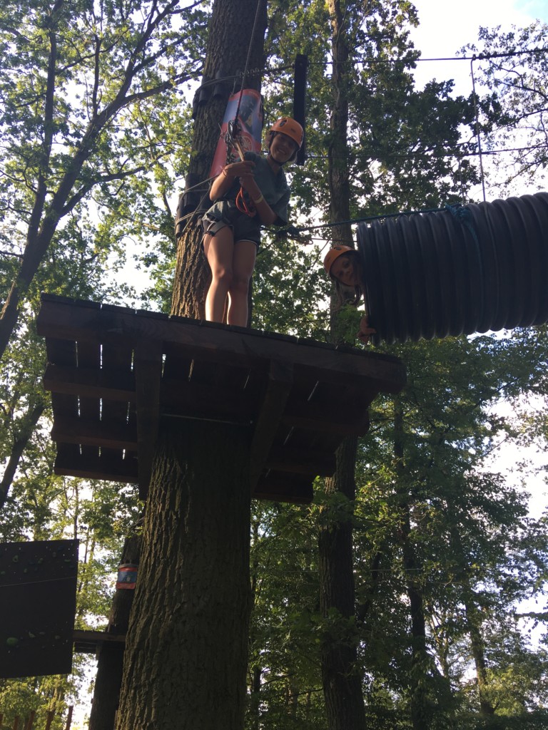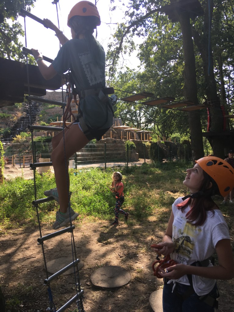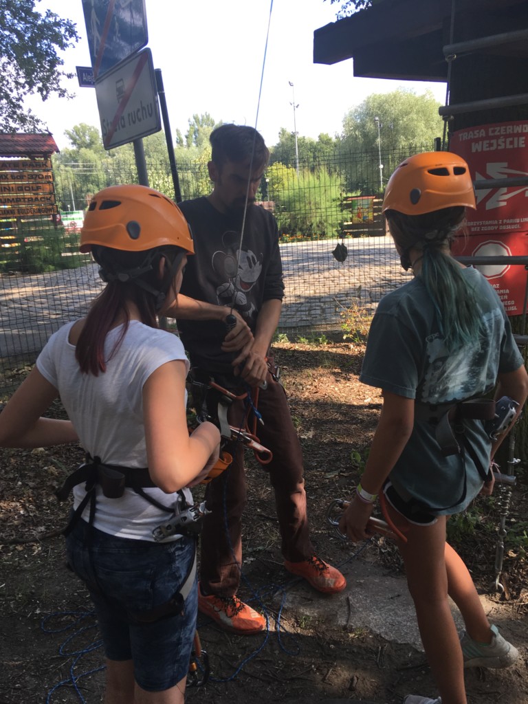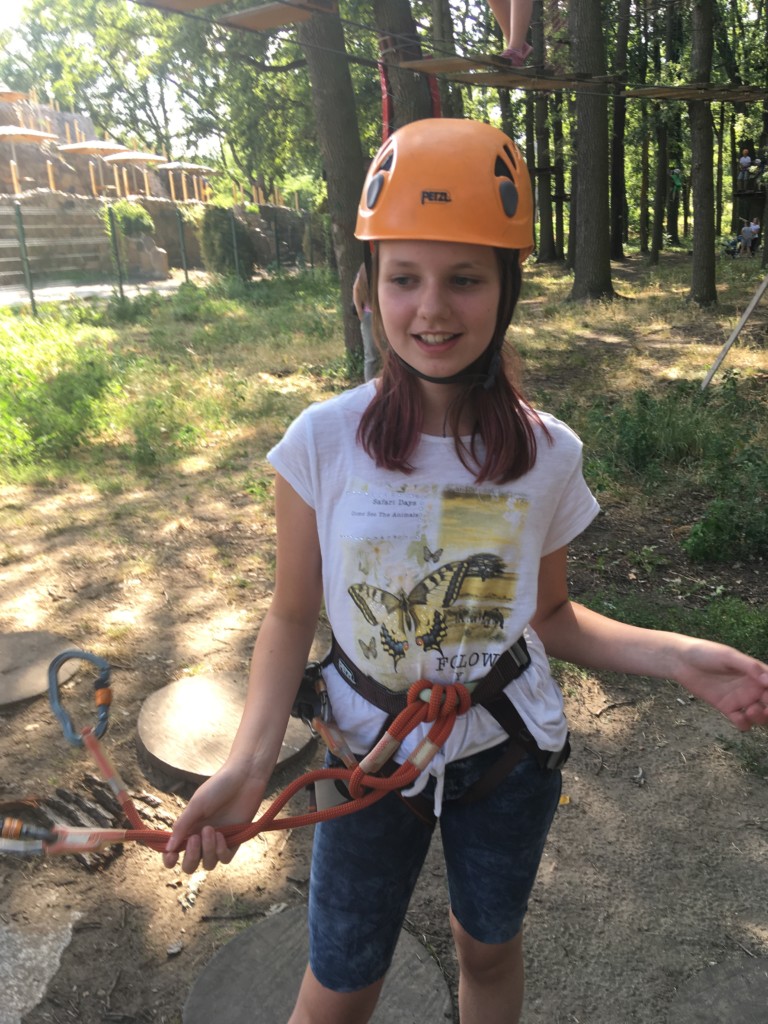 Parki linowy w Nowej Soli to idealne miejsce dla naszych odważnych, zwinnych dziewczyn, które najwidoczniej nie mają lęku przestrzeni i wspinaczka na wysokościach jest dla nich wielką atrakcją. Dzisiaj Zosia z Julią razem pokonywały przeszkody, a Marlenka już samodzielnie na najwyższym poziomie. Łukaszek tym razem zrezygnował z parku linowego na rzecz zwiedzania pozostałych atrakcji Parku Krasnala. Z dorosłych nikt się nie pokusił do przejścia przez przeszkody zawieszone na wysokości.