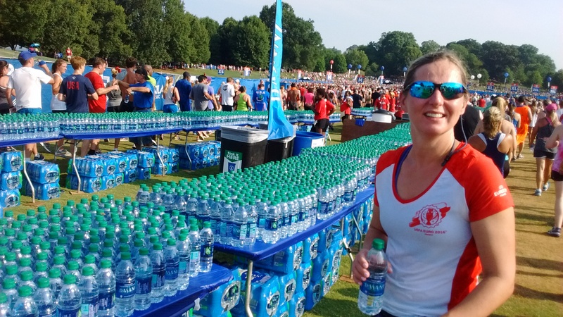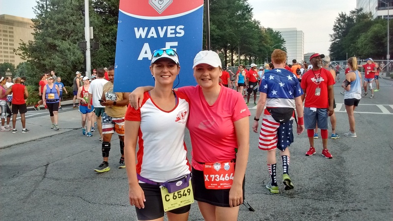 Peachtree Road Race 2016. Przełamywanie własnych słabości, duży wysiłek fizyczny wspólnie z Anią, niewyobrażalny upał i wilgotność, a przy tym jeszcze zabawa i atrakcje podczas biegu spowodowały, że będą to dla mnie niezapomniane chwile. Po raz drugi z Siostrzyczką (5 raz Ania sama) uczestniczymy razem w tym wspaniałym biegu. Ogromne przeżycie i doświadczenie nieporównywalne z żadnym wyścigiem kolarskim, czy MTB, w którym brałam udział. Ponad 70 tys. uczestników, w tym 3,5 tys. woluntariuszy. Świetna organizacja: ustawienie zawodników w sektorach bezproblemowe, poczucie bezpieczeństwa pomimo tłumu, woda dostępna dla uczestników co 1 milę, kurtyny wodne na trasie, na mecie ręcznik wilgotny zimny do schłodzenia się i drobne co nieco do jedzenia po biegu. Tysiące osób dopingujących na trasie, przebierańcy, muzyka „na żywo” i życzliwość współuczestników. Pozazdrościć tylko, że u nas nie można uczynić święta narodowego okazją do aktywnego spędzenia czasu.