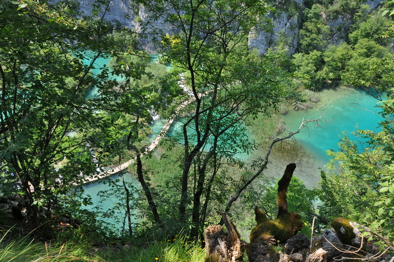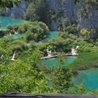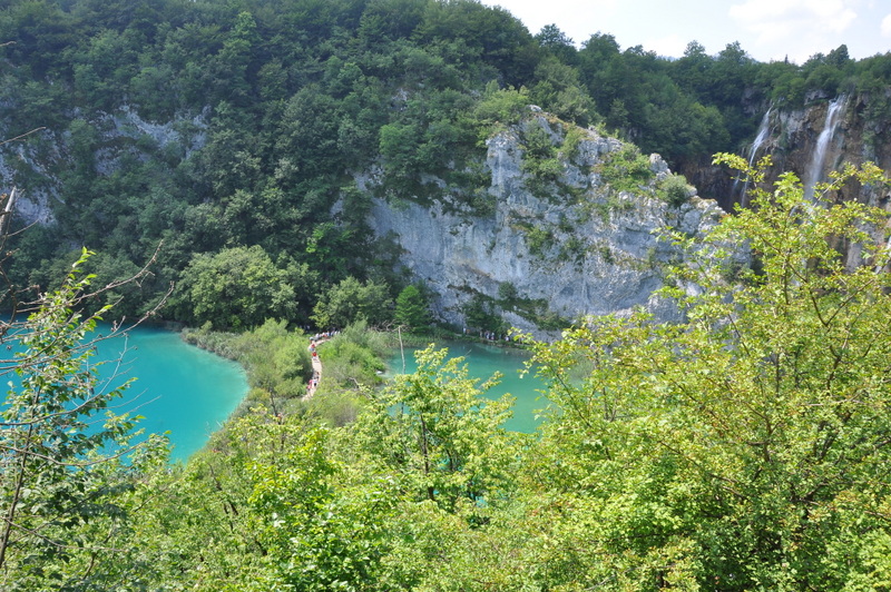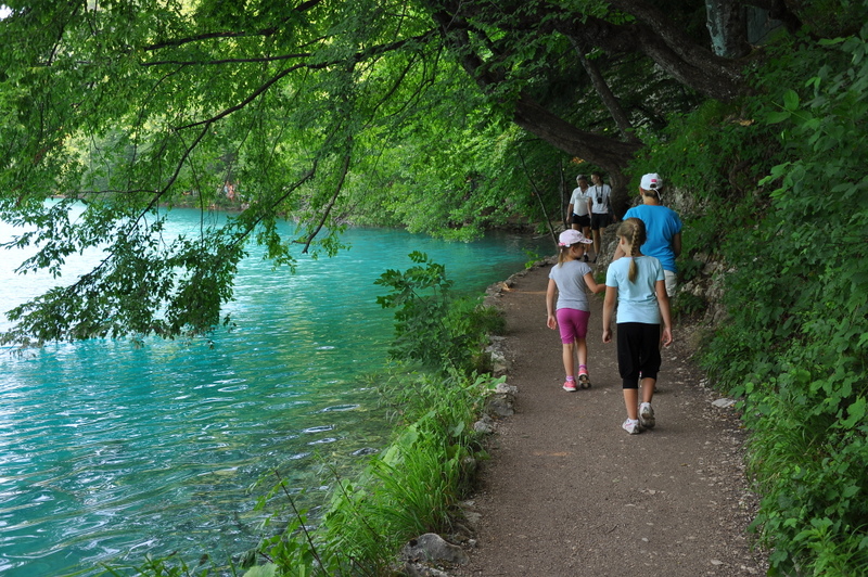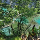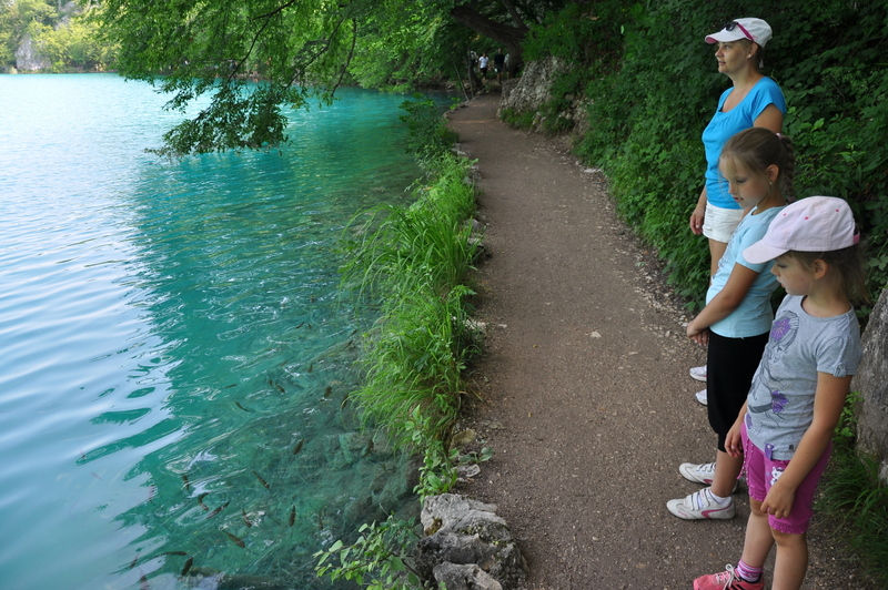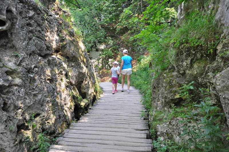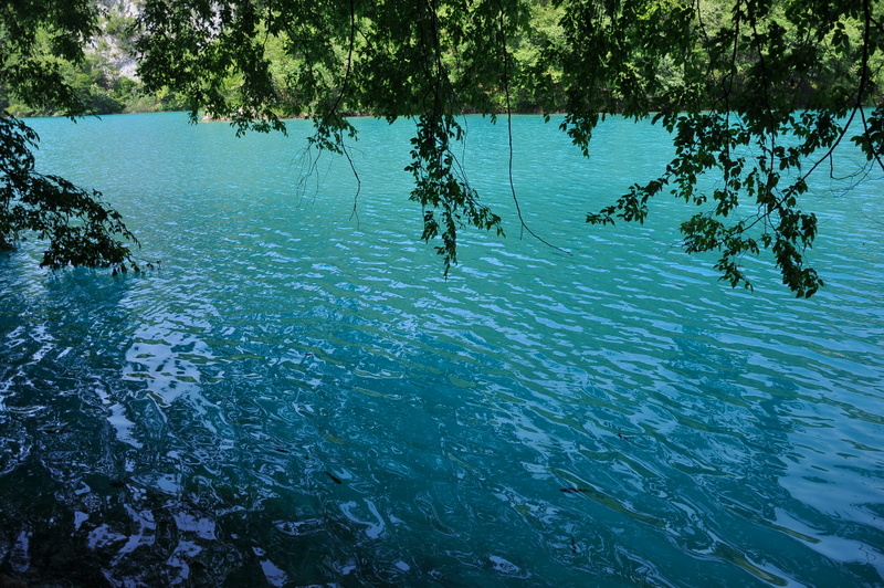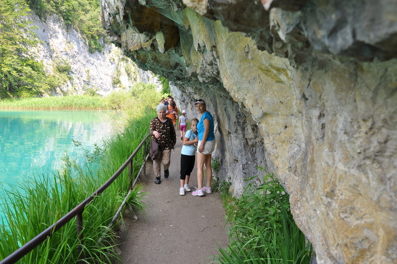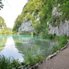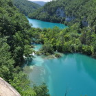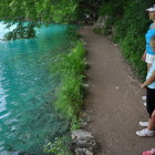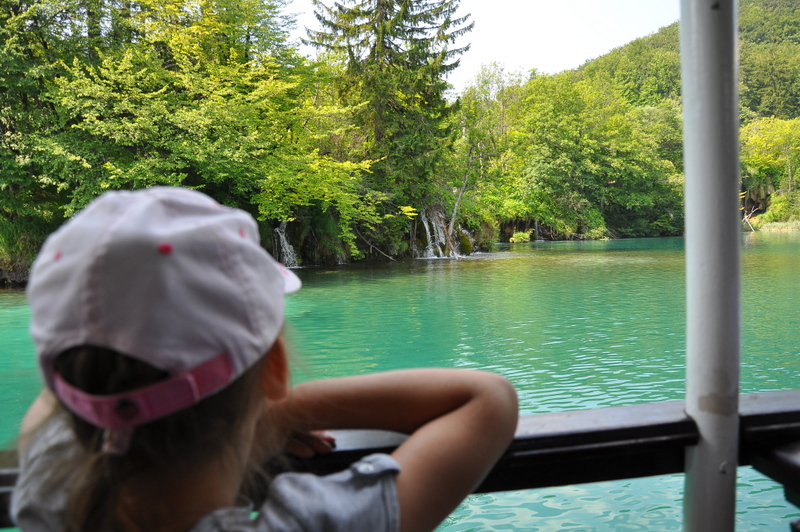 Następnego dnia rankiem dotarliśmy do drugiego wjazdu do Parku. Ponieważ moja kondycja fizyczna nie była dobra, wybraliśmy najprostszą, 3-3,5 godzinną trasę. Po zejściu na przystań, statkiem przeprawiliśmy się na drugą stronę jeziora, a następnie drugim statkiem przepłynęliśmy wzdłuż największe w tym rejonie jezioro. Ten krótki rejs przypomniał mi spływ Dunajcem, choć widoki były ciekawe, to jednak w żaden sposób nie mogły dorównać tym ostatnim z Dunajca. Jezioro położone jest wśród wzniesień pokrytych lasem liściastym, ma krystalicznie czystą wodę, w której widać rybki. Jednak prawdziwa niespodzianka czekała na nas już wkrótce. Po rejsie, ścieżka prowadziła do kolejnych mniejszych jezior, których kolor wody w słoneczny dzień jest bajkowo turkusowy. Plitvickie jeziora, to kilka jezior położonych na różnych poziomach połączonych ze sobą bajkowymi wodospadami. Trasa wiedzie wzdłuż brzegu kolejnych jezior, które otoczone są skałami wapiennymi. Widoki koją duszę i ciało. Ciepłe barwy skał, jeziora i roślinności tworzą harmonię i piękno, dlatego tutaj można odpocząć i się „wyłączyć”. Miejsce jest kameralne, nie przytłacza rozmiarem i można się nim prawdziwie zachwycić.